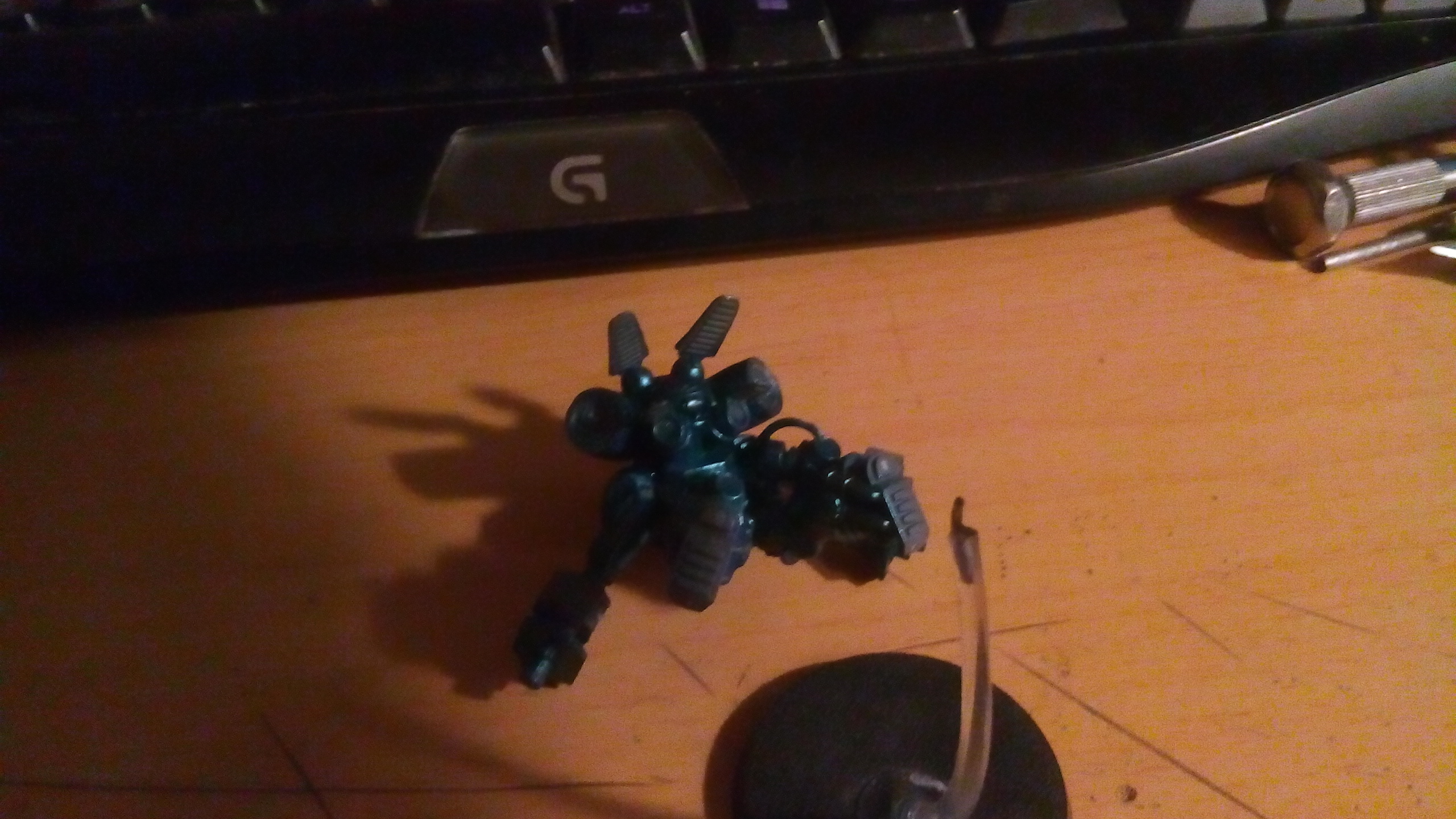 Pic 1 - it's hard to see because of the metallic paint, but there's two small cylinders in the jetpack that are horizontal reference to the front and vertical faces. Whatever genius designed these models (and needs to be drug out behind the wood shed and given some remedial lessons in applied logical design) made the flight stand so that unlike EVERY OTHER FLIGHT STAND IN THE GAME AND MOST OTHER SYSTEMS it doesn't have a Post or Ball socket, no the damn thing knuckles between those two cylinders and half-cups them. That's right, they don't have an actual hard-fixed mounting design to them. They are only held on two faces instead of all around the stand.