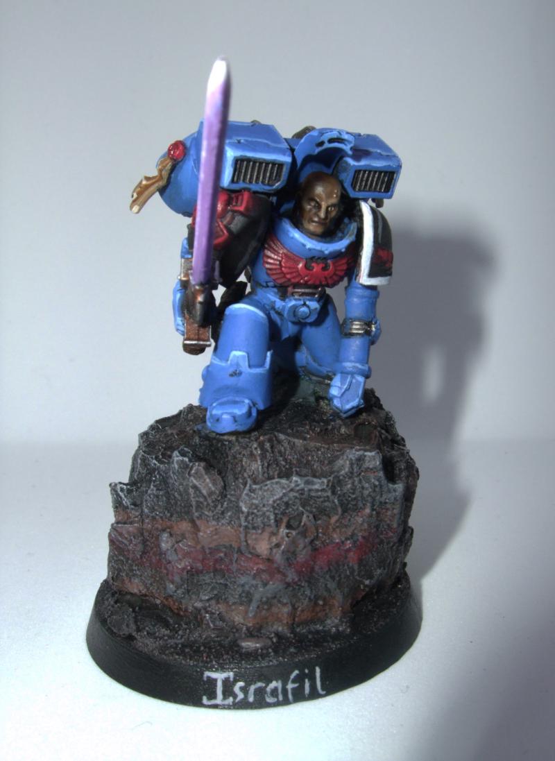 I apparently don't have a simple, proper, front on shot of him but here's my captain for my Blood Angels 2nd (which I should try and get back to working on...)