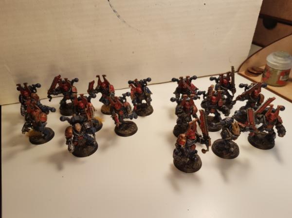 Cheers. I really wanted to go for a fleshy look on it. Like it was bursting or growing out of the armour. I'm working on some berserkers, so will put pictures of those up too. These are finished to table top quality (in my opinion at least). They require edge highlighting and some finer details (some eyes, belts etc). I tried to get these done quickly, but hopefully they're ok.