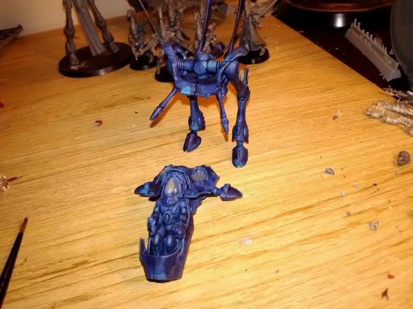 I did the camo color for the War Walker and was not pleased. It looks fine, but I'm not really into it. My Wraithlord will be painted flat, like infantry, like the Wraithguard, because I don't consider the Wraithlord a vehicle. The Wave Serpent I'm not sure, yet. I might use a sponge or I might try to fade from blue to black and keep it just flat (with the fade). I really love the wraithbone colors and definitely plan to use that color for anything that looks like it would be metal or unpainted on an imperial model.