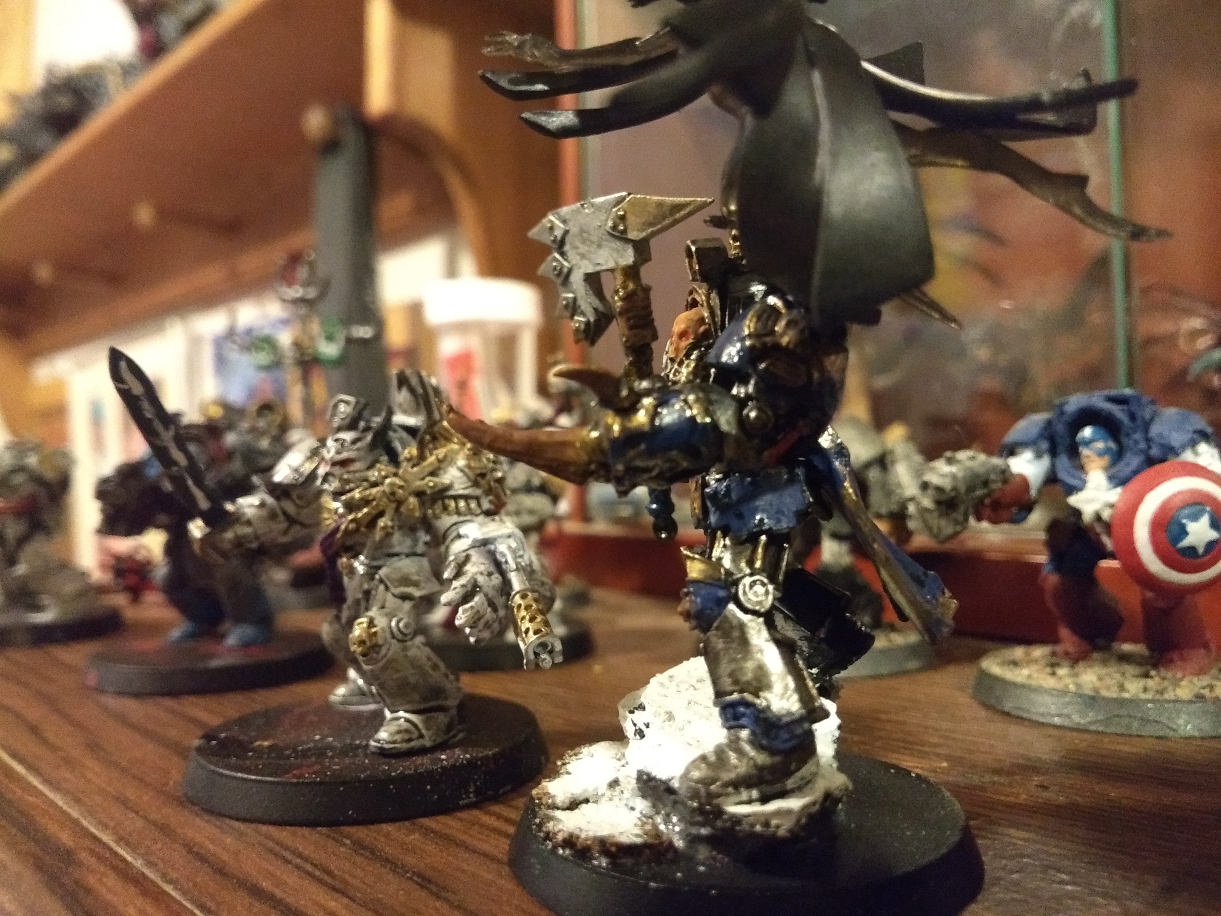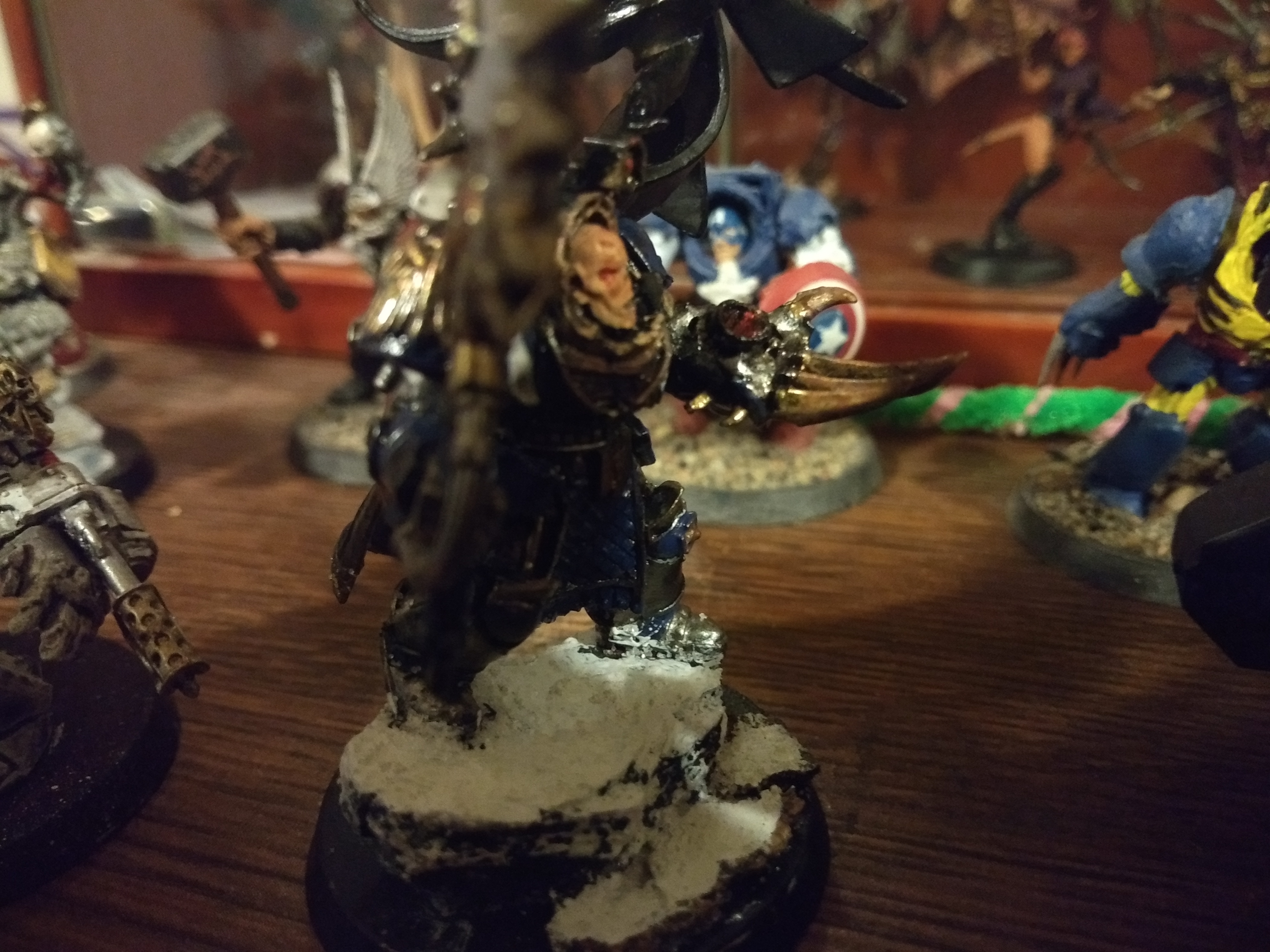So I got the body of Lufgt Huron from a yard sale but it was missing the master crafted lightning claw and his head and some other small parts. I play chaos and thought of a cool conversation, why not make a version of blackheart wearing his old armor but using the weapons he now has as a agent of chaos. So here is what I came up with.....ps arms are reversed due to modeling restrictions ( I didn't have a claw for the right hand only left) I painted him in the astral claws colour scheme because it works well with my existing army and looks better then the red scheme imo.