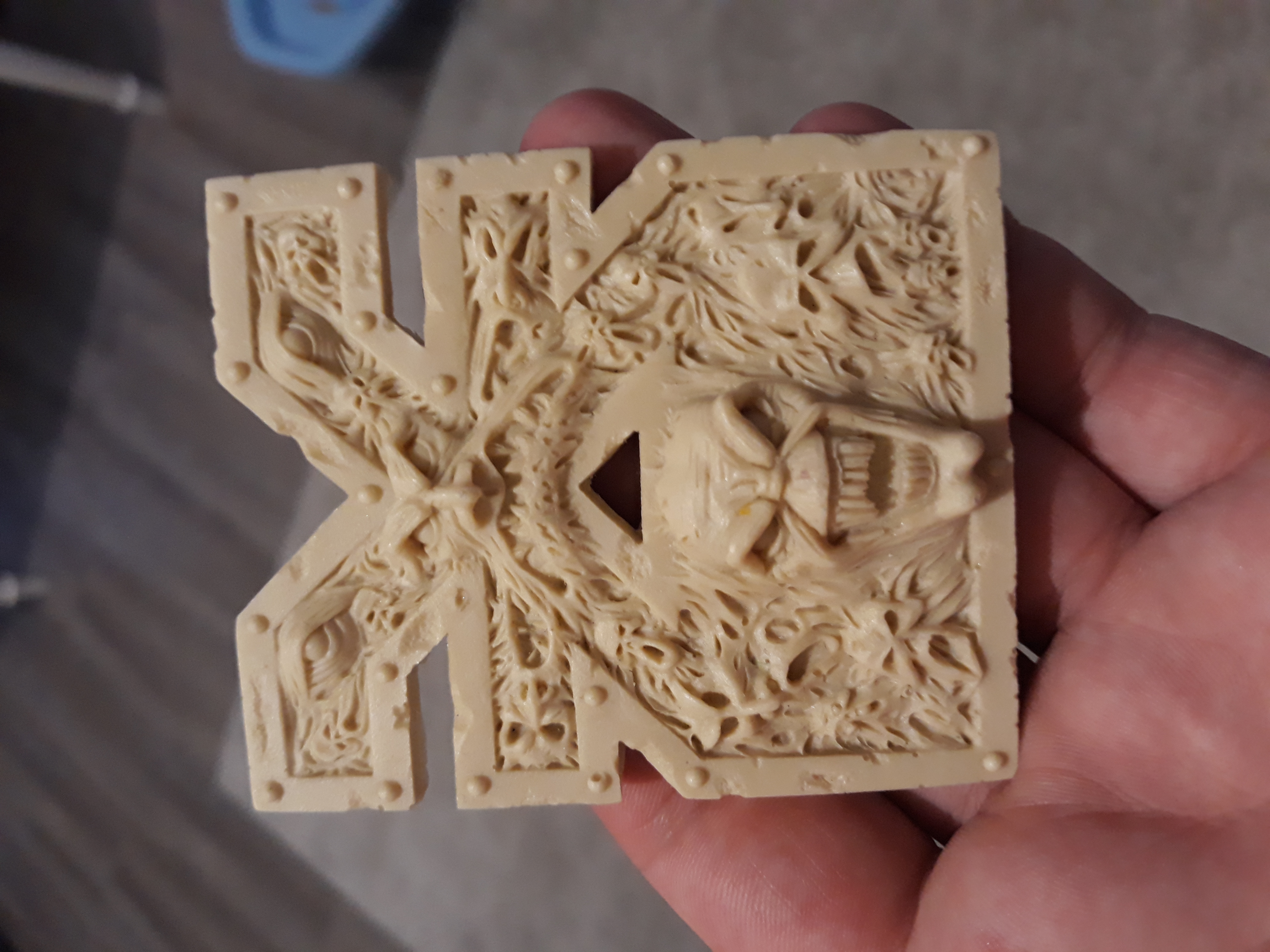 I happen to have a big ol' Khorne Symbol made from Resin (the same resin the old armorcast stuff has been cast in)