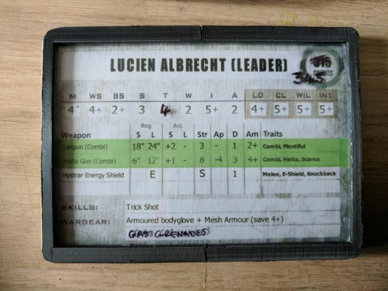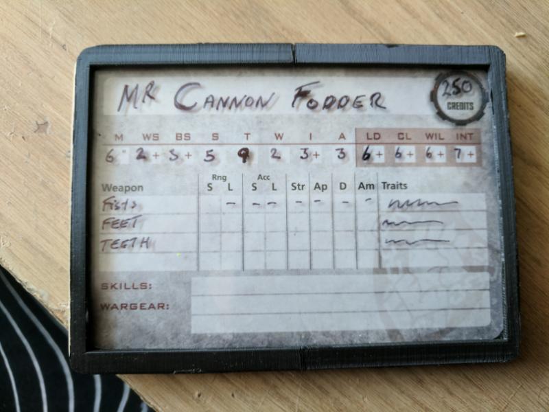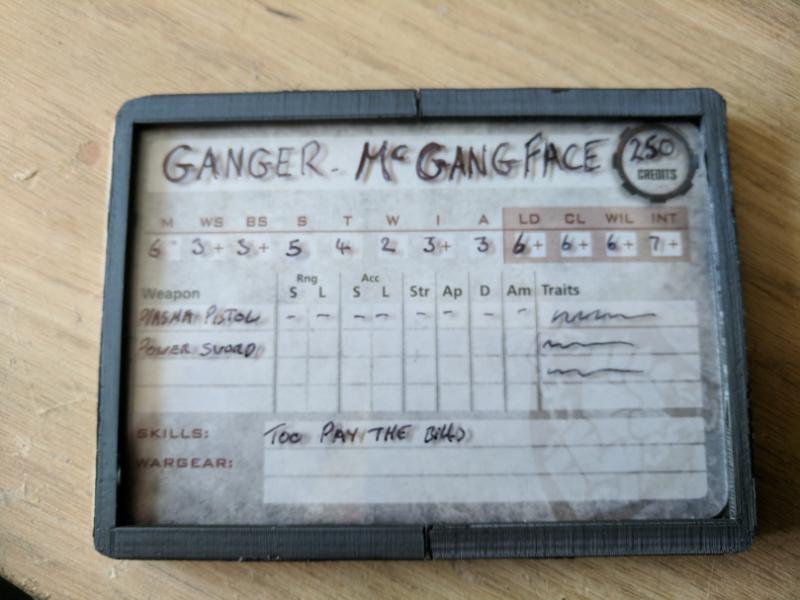 One of the major issues i have encountered with Necromunda is the creation and management of gangers, i was left with the option of either making copies of the cards and editing them in photoshop etc, laminating the cards which would require a laminator an plastic sheets or getting a dry wipe pen which may ruin the original cards or just rub off at the worst possible moments, so i decided to create a dataslate to hold blank cards which could be easily written on and wiped off at a later date with a fine line marker pen.
