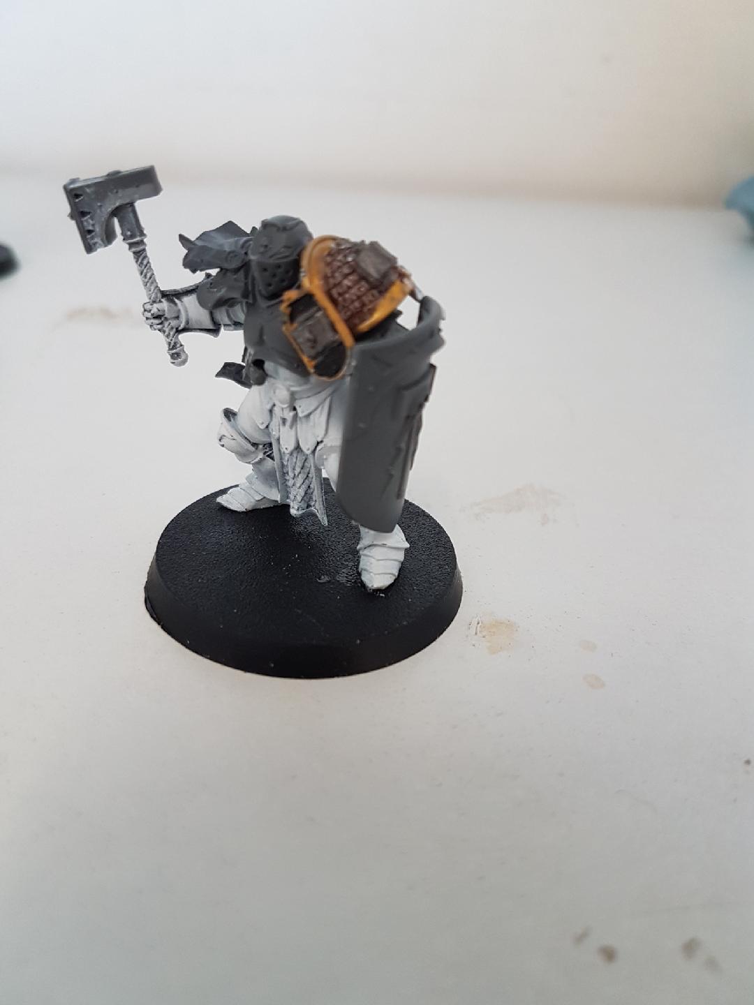 I have chopped off the Hammer and given him a Nemesis Halberd as a Force Stave or Force Sword instead, and given him a backpack as he will be in power armour.