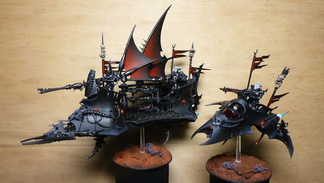 de Baramyne! Thus why I need help. I plan to paint my Drukhari in the same exact colors except with some white decals on the vehicles for some pop. I love the sith-vampire esque theme. If anyone knows any good airbrush paints for fading that black to dark grey that would be amazing as well; as is any other suggestions.