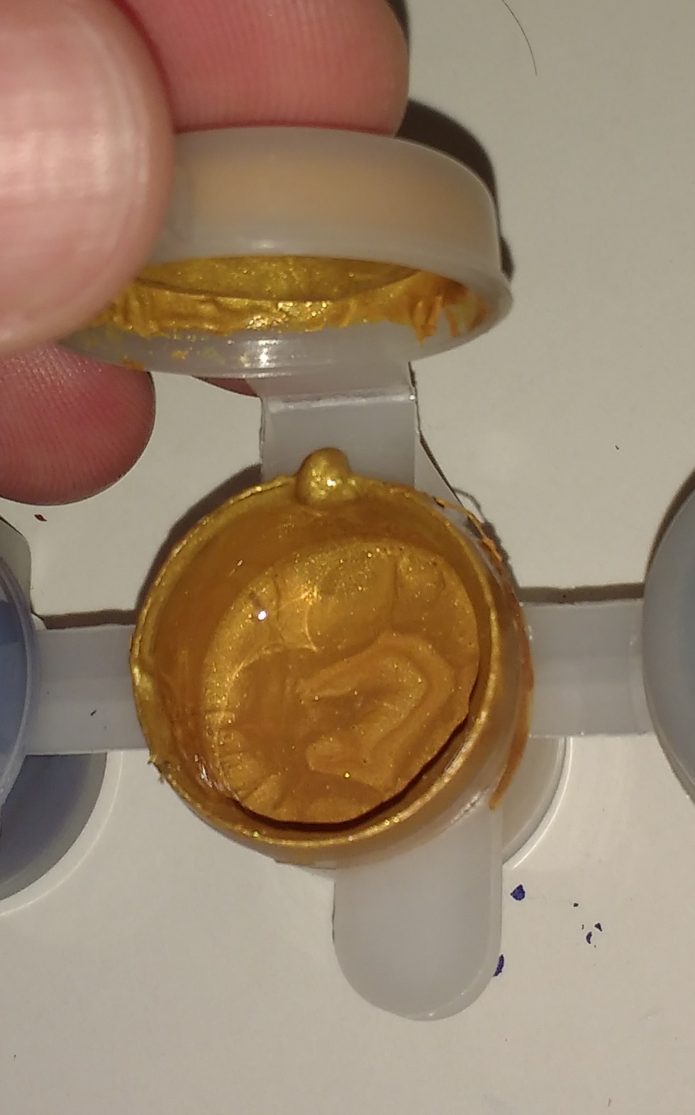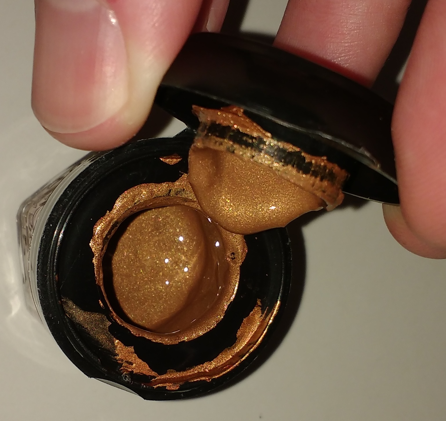 - Shining Gold - in barely-used starter set pot, looks roughly equivalent to 1/3 of a normal pot. This was in the best condition of all - the starter set pots seem to seal very well.