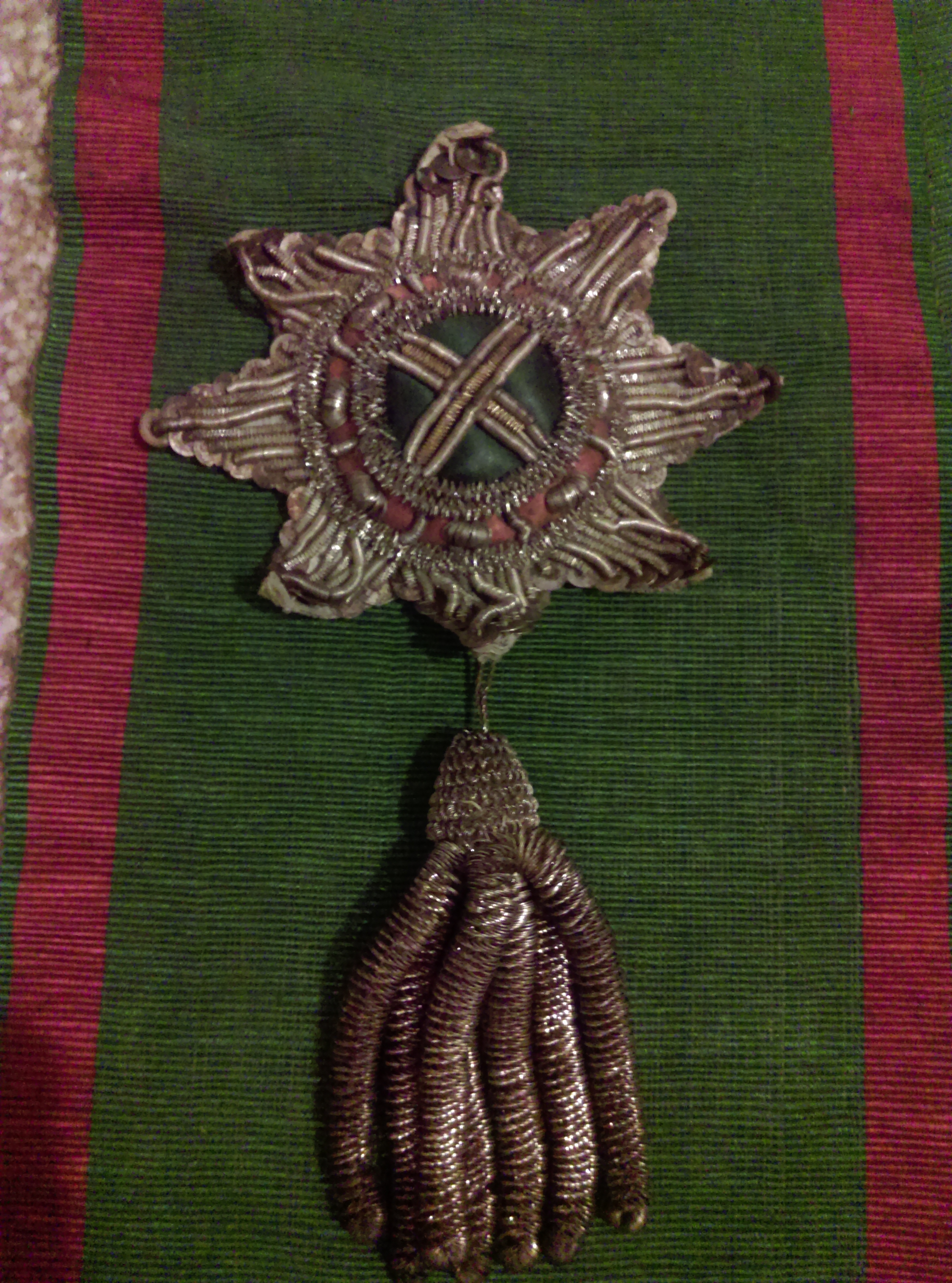Not do long ago, the wife of my First Cousin Twice Removed had died and, leaving no heir, my FCTRs personal affects were passed on to my family including his war medals and an unusual sash.
