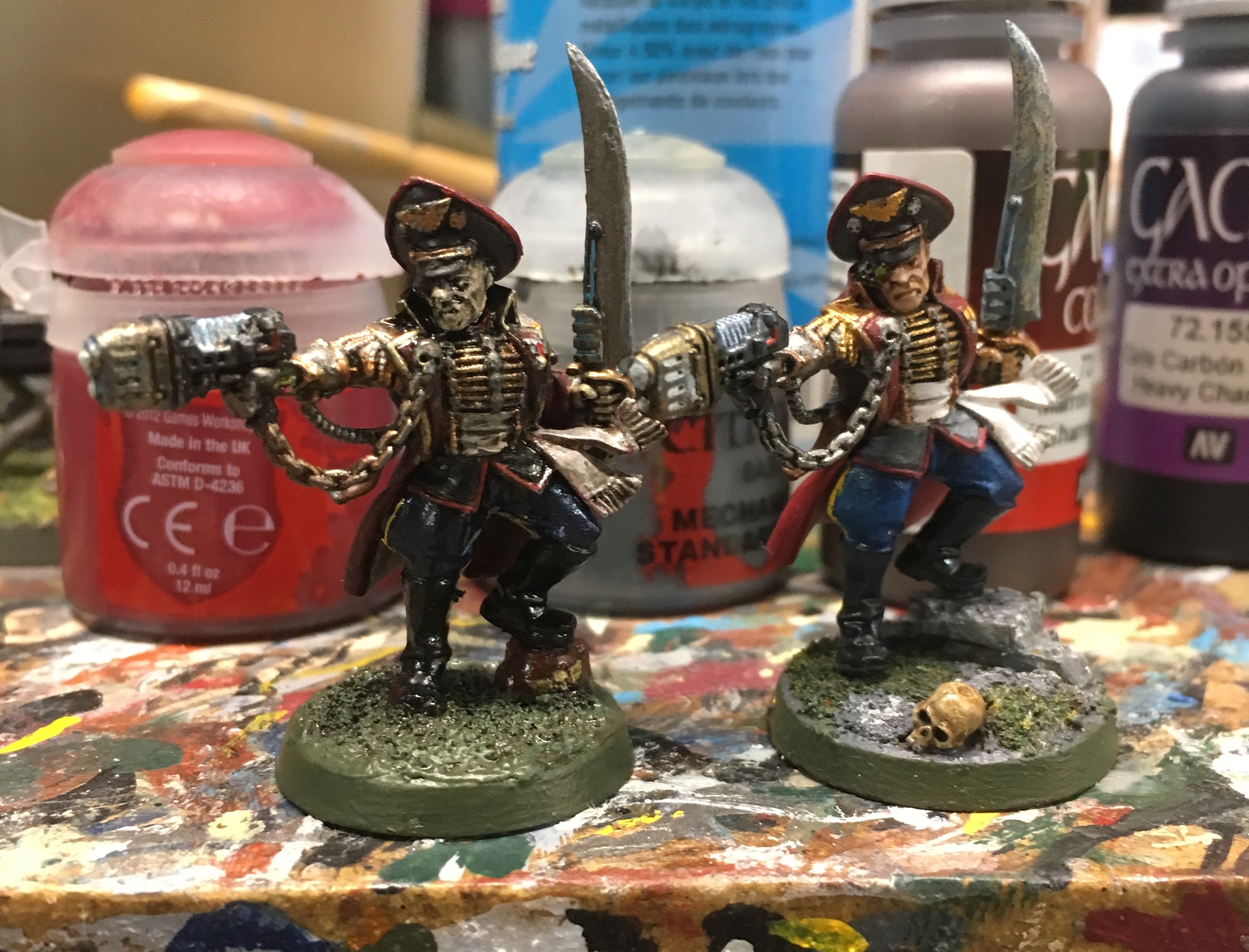 Both are painted to match the rest of my IG which have blue pants, grey shirts and "rust" red armor. I will try and throw up some pictures of them later