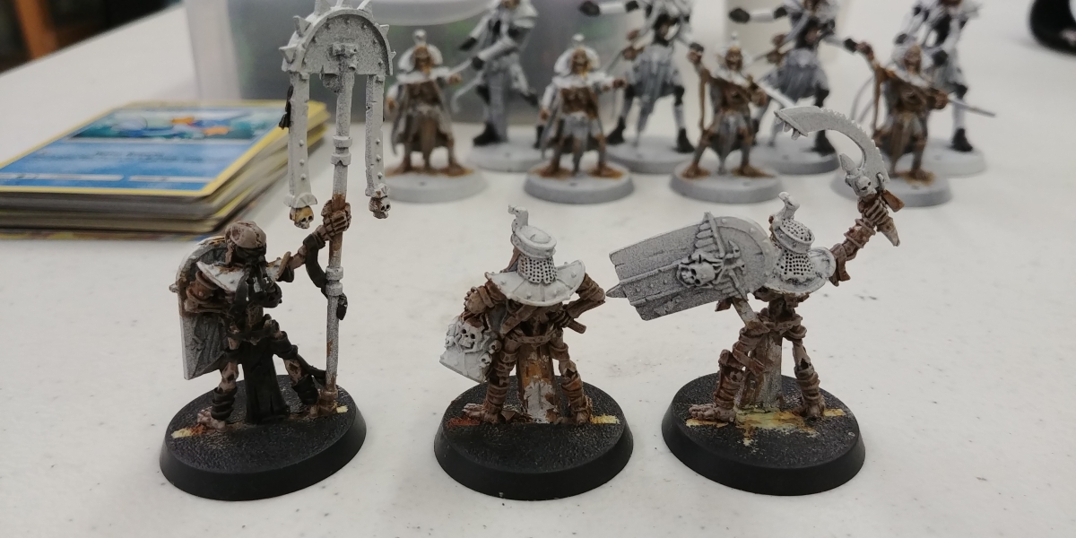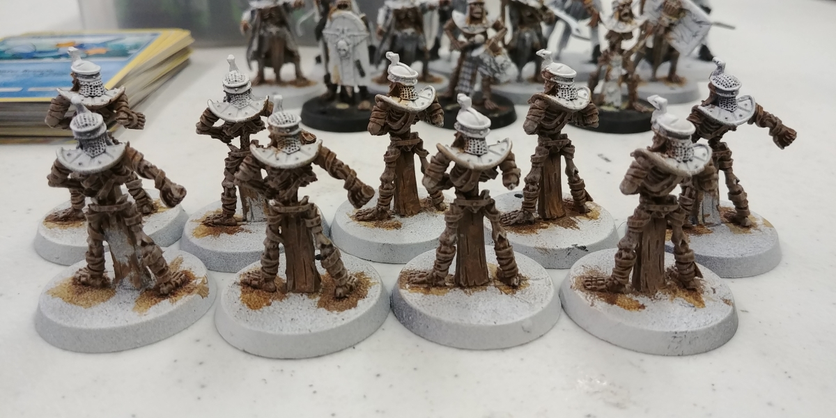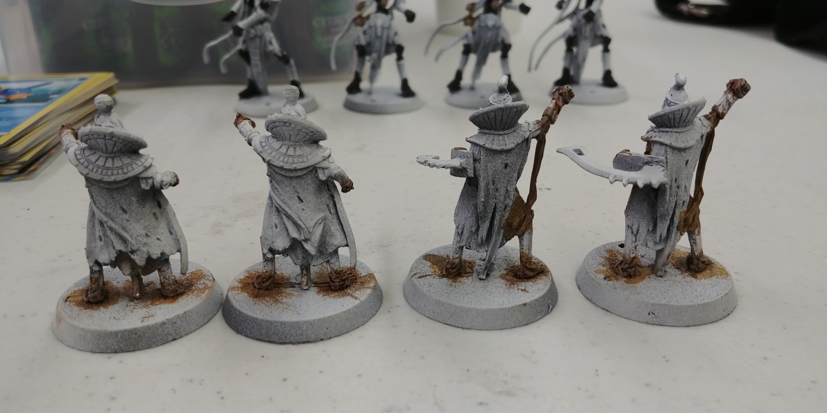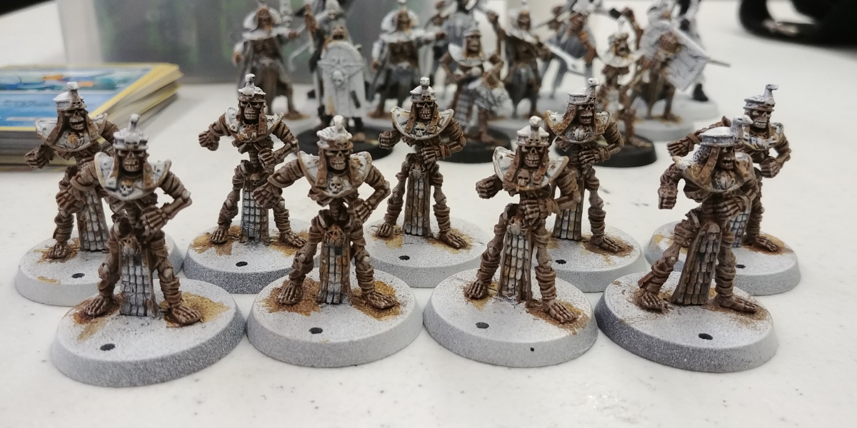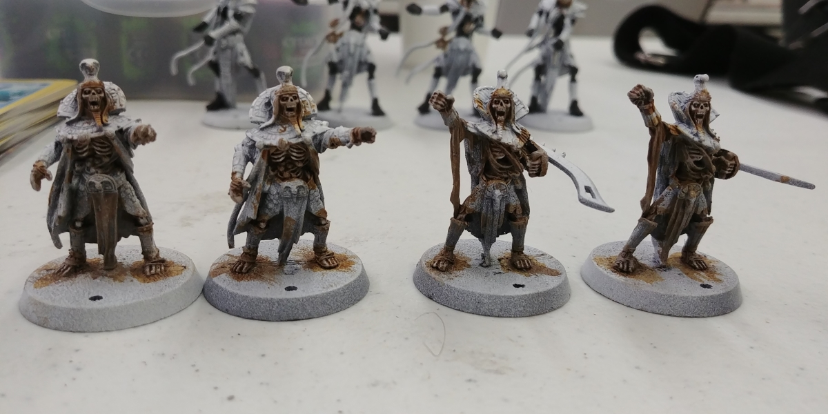 Up next is a bright blue on the straps, tabbards, and some helmets, and a bronze/brass/gold on the armor, followed by a desert colosseum basing.
