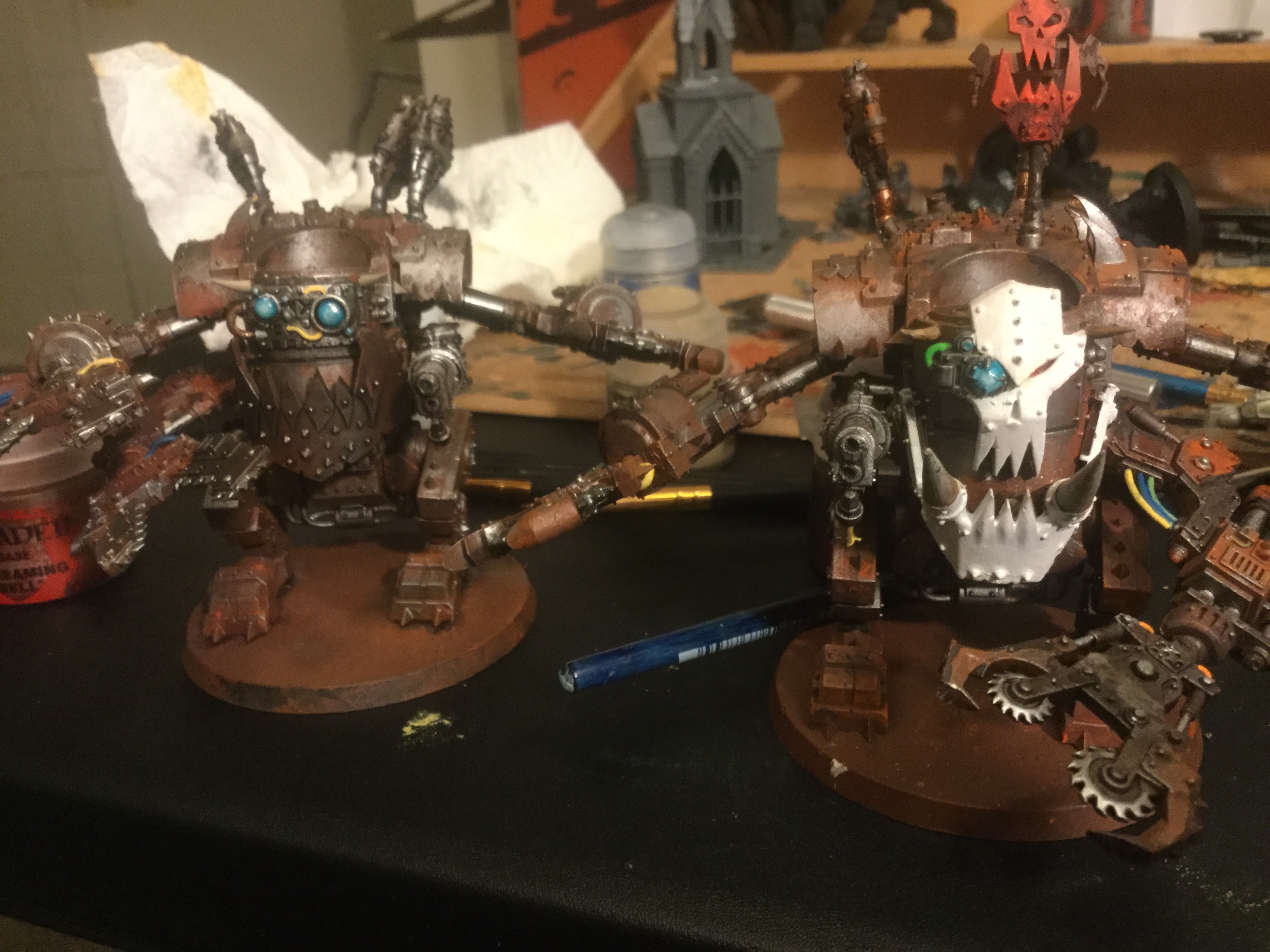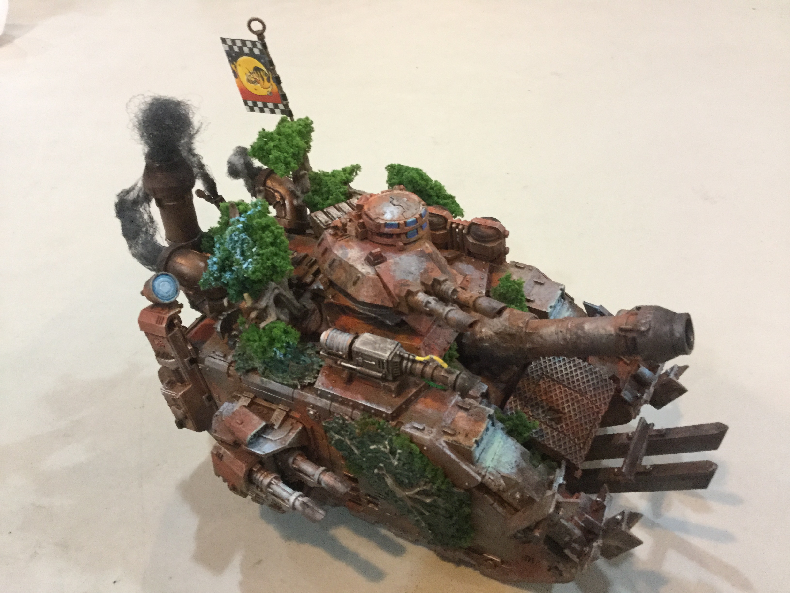 It's a the basic mournfang brown spray, and then I started with the Ryza rust dry stippling and lighlighted it with the Orange Rust Weathering powder from Forgeworld. Then for the silver is the dark silver, Leadbelcher I think it's called?