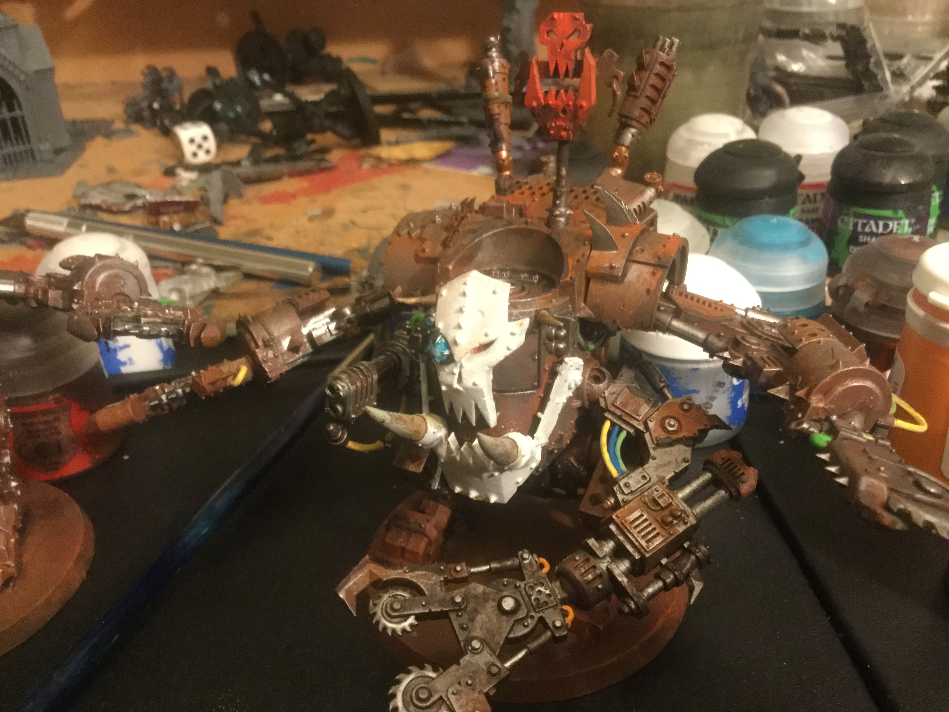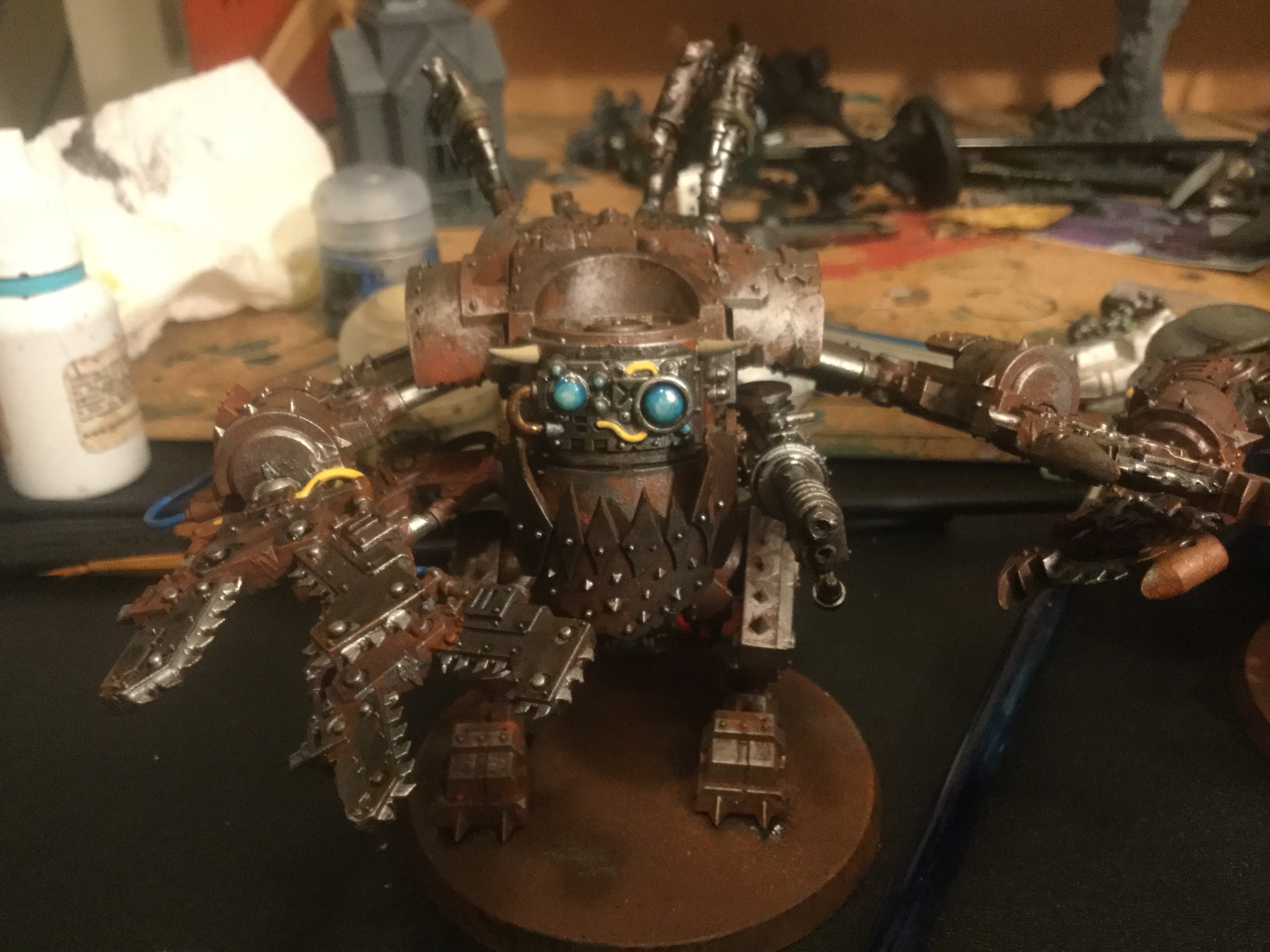 After that I gave parts of it washes in Agrax Earthshade, or sepia in some spots. For the Dreads it was just staraight Nulin Oil to make the silvery bits darker and then a brighter silver on the sharp areas.