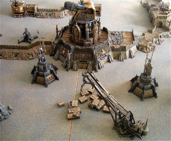 So, a grey board with a mix of industrial and administrative buildings, with some monuments and Daemonic influences. A. N. Other Ruined Imperial City then, really.