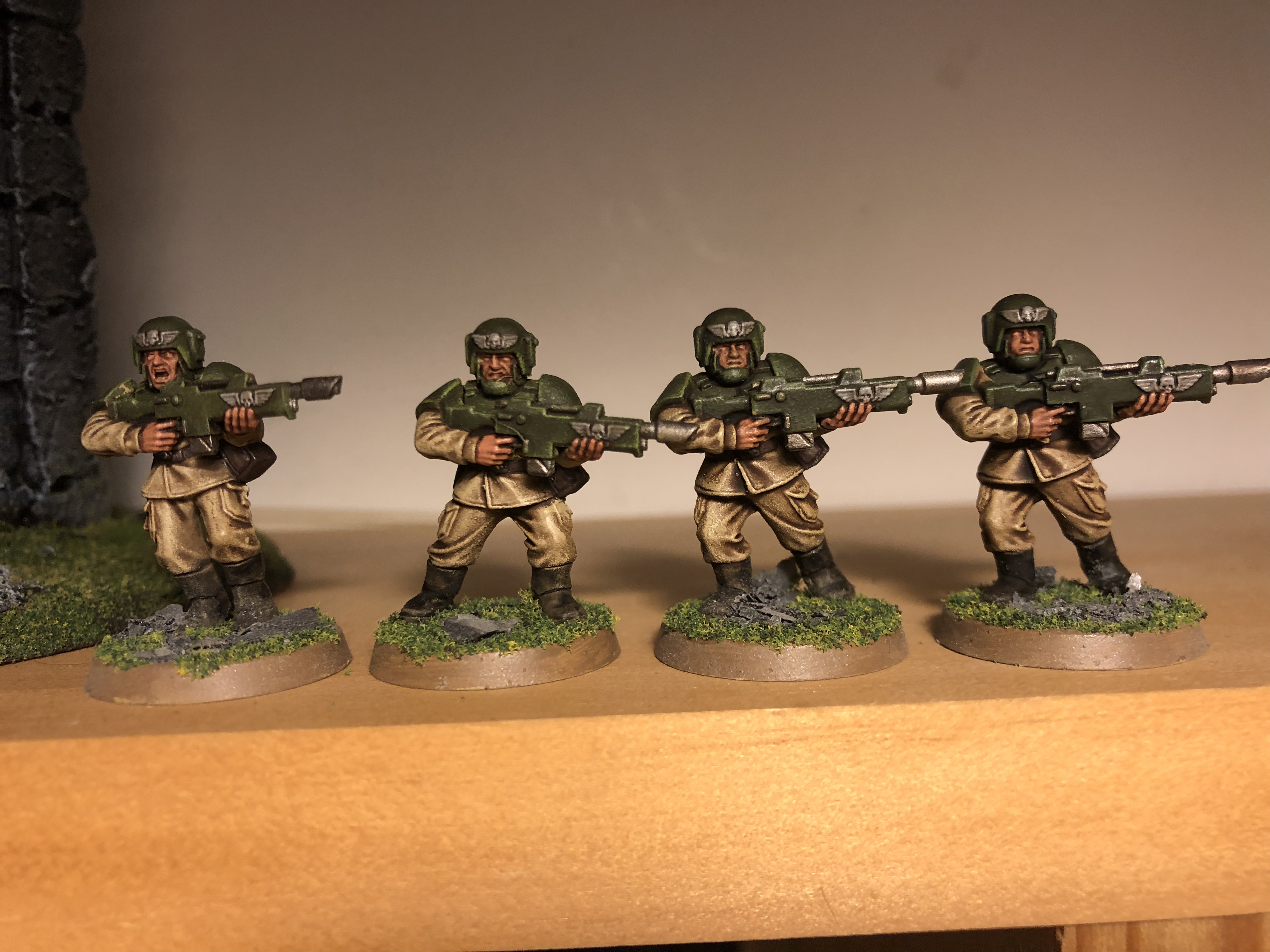 10 Guardsmen: Sergeant; Heavy Weapons Team (lascannon); 9 Guardsmen 60