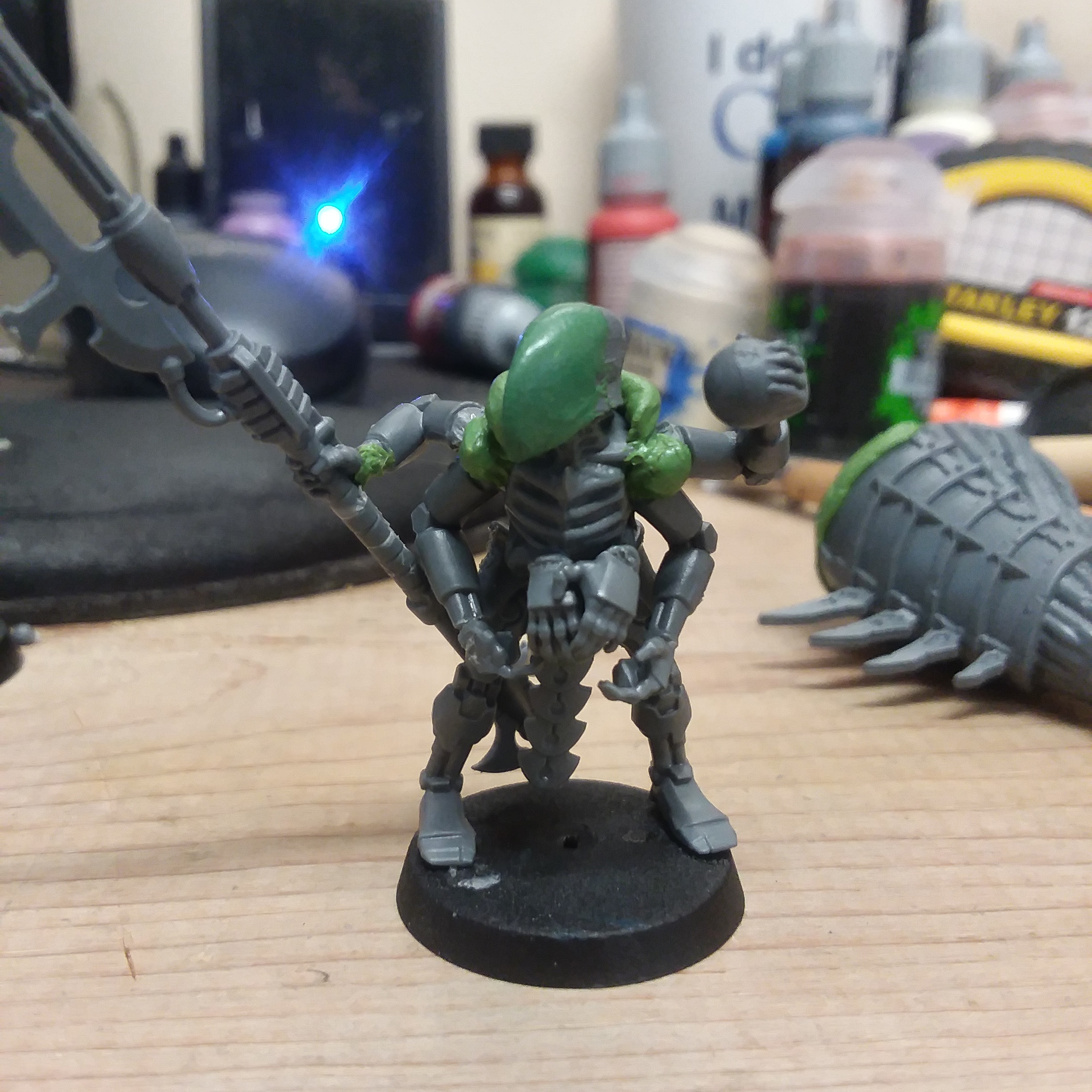 been working on this boy for a few hours, gonna be my new first wizard. just need ta finish his cowell and touch some things up. really what I'm struggling with is a paint scheme. thinking purple armor plates, bone white torso and head, and black arms. some glowy blue for the magical jazz. what do ya'll think?