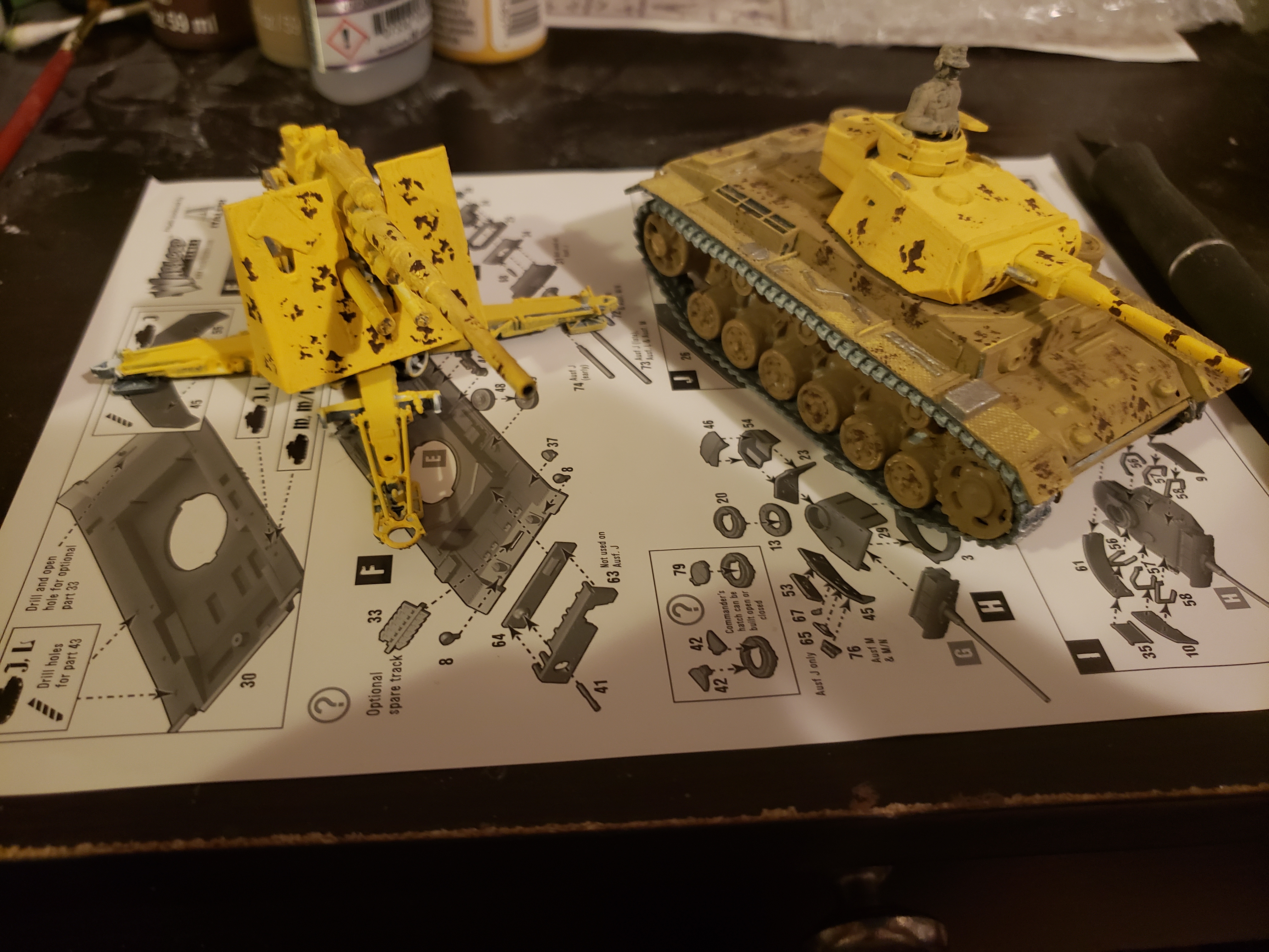 After doing some research I found that quality control wasn't the best for really any army and the shades of yellow found on DAK armor varied im shades from a brighter yellow to more of a yellow-brown and uniforms tended to bleach, with some units getting the yellow uniforms from Italy. I will be aiming for an olive green tunic with a khaki pants or olive green all over. The Pak 88 in the box will be a brighter yellow and the Pz. III in the kit will have a brighter yellow turret with a brownish yellow hull and chassis. The desired effect is to make it look like two non functional tanks were put together to make one functional tank.
