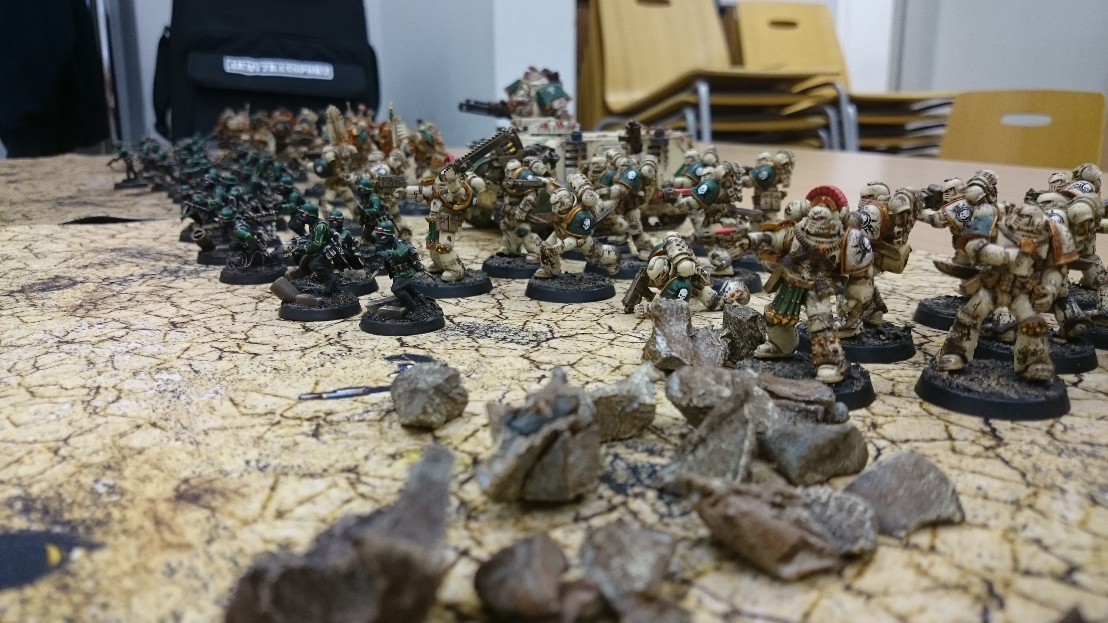 I play loyalist Death Guard, also in 40k. These are very bitter men, outcast and wronged. The Unbroken Blades that haven't dulled for ten thousand years. We are the Echoes of Eisenstein.