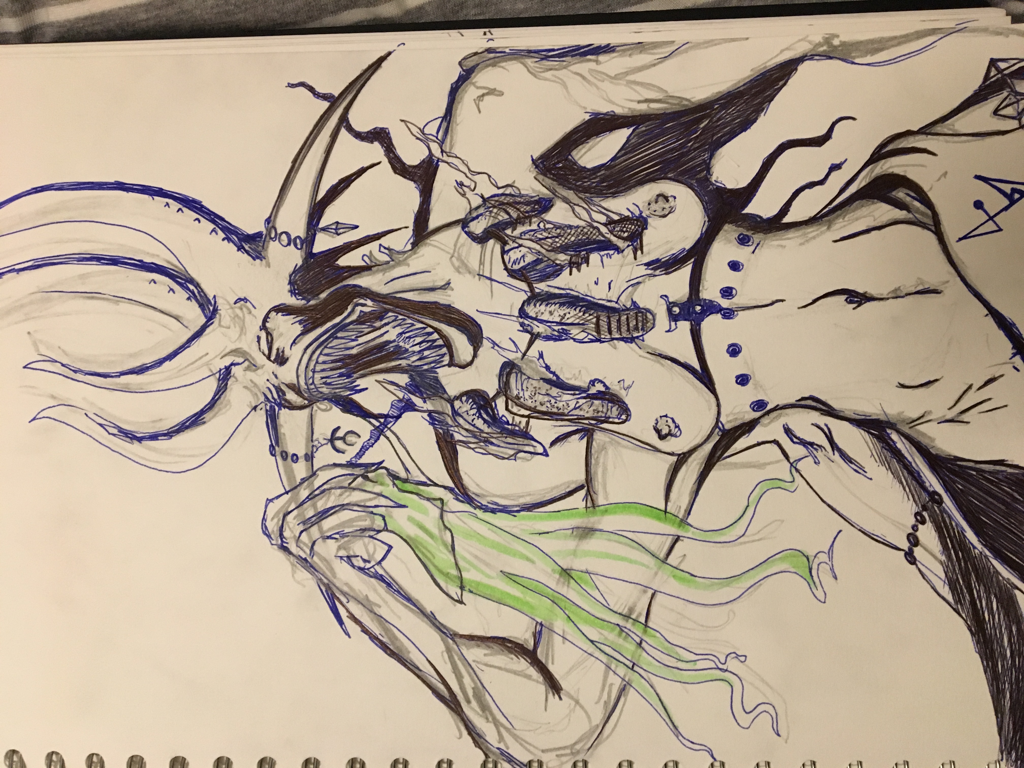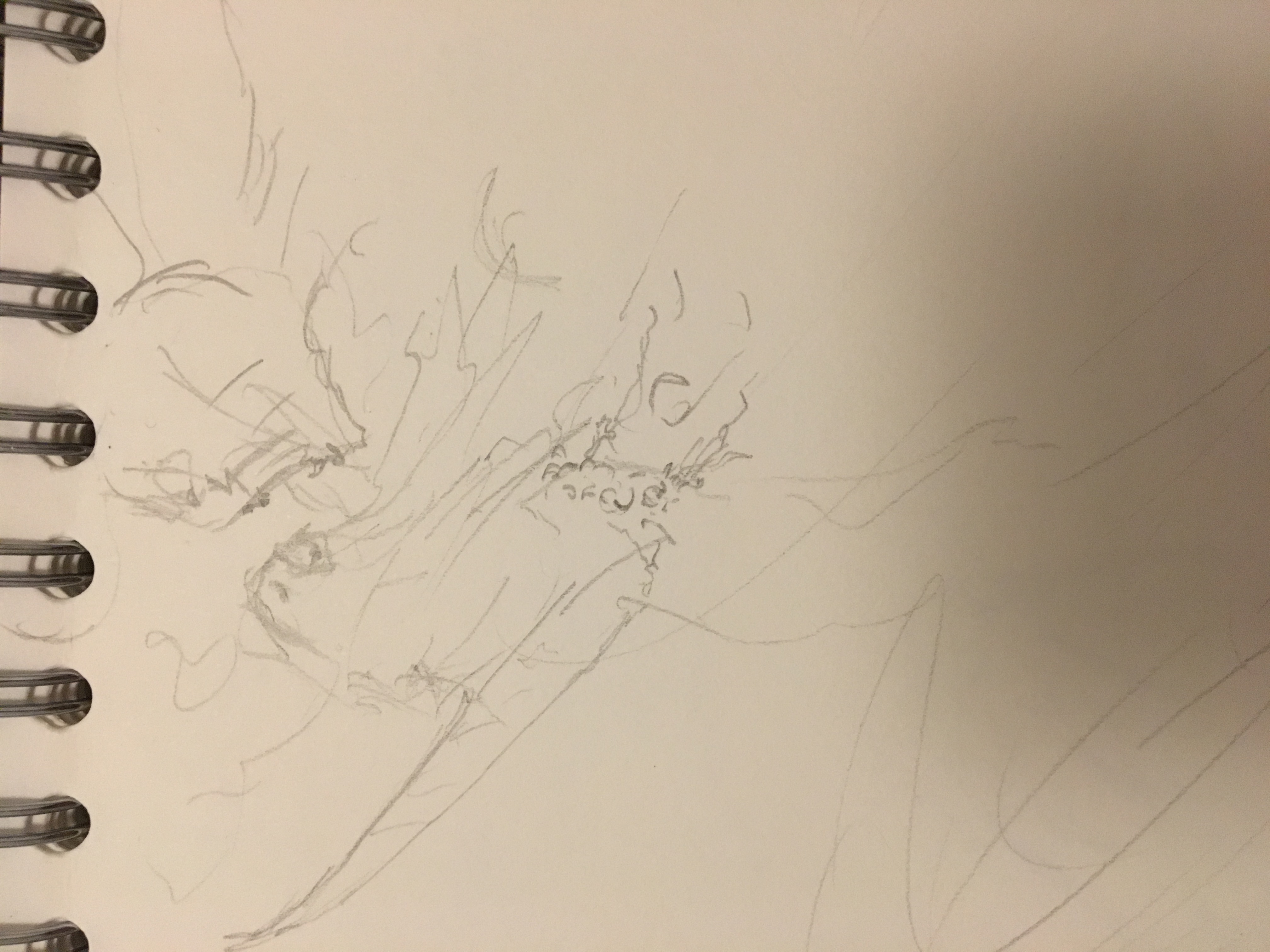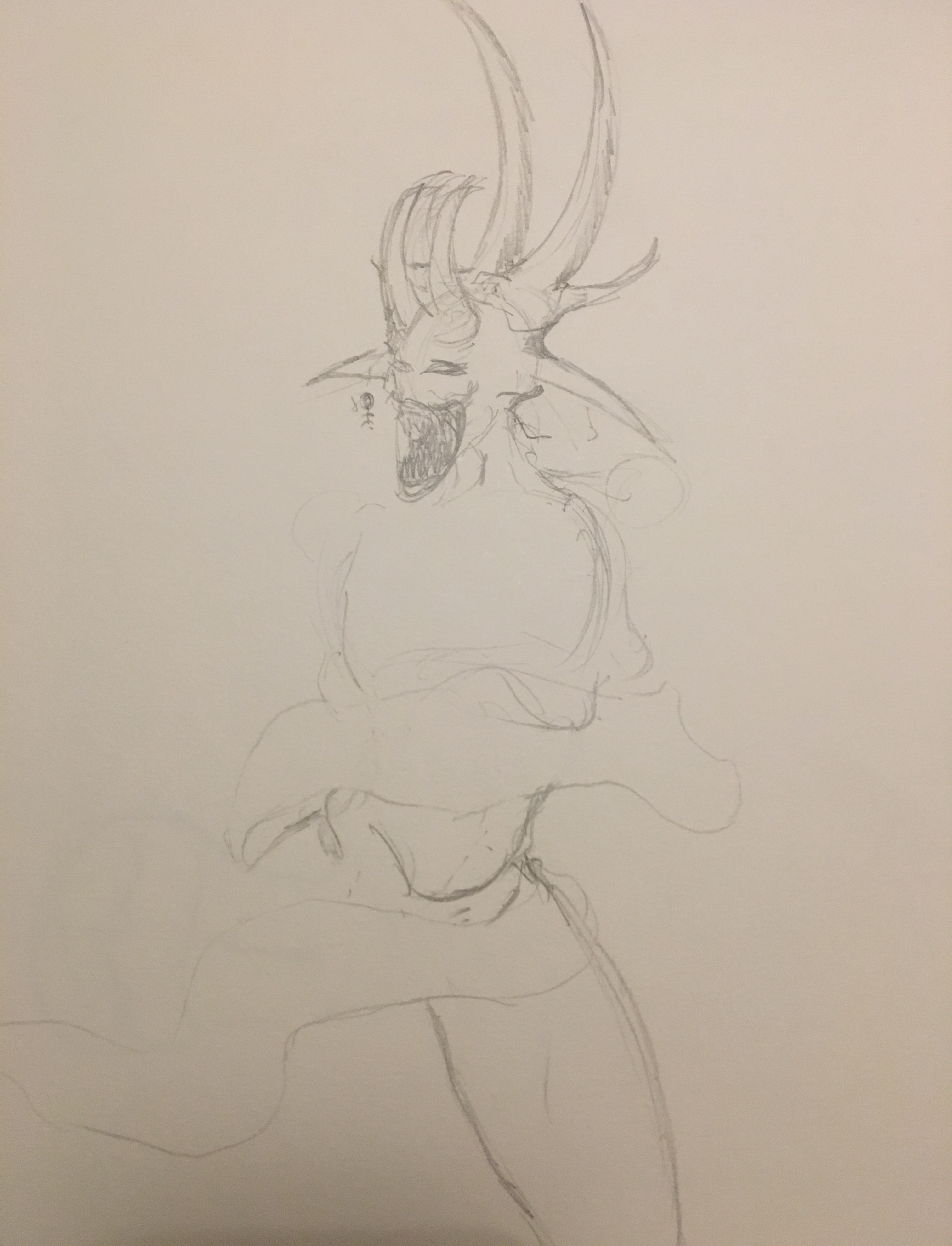 Some of these drawings relate to the outcome of that combat. Lady Olynder hangs eviscerated on Ego’s claws, the ontologically toxic essence of Chaos spreading through her incorporeal form. Ego mocks her by taking one of her grave roses.