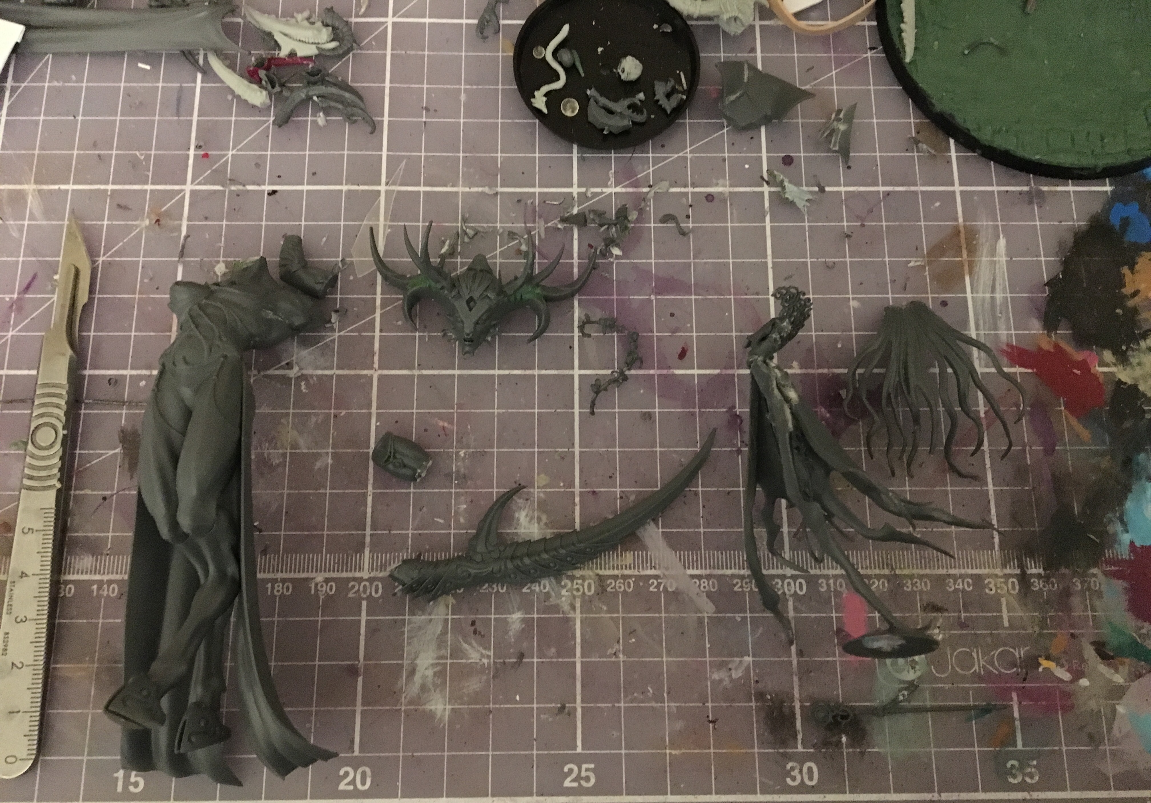 Starting work the model for Ego. The model will focus on the confrontation with Lady Olynder. I’ve done the basic assembly for both kits and the first steps to repose both of both models. This is a first for me as I’ve never reposed two heroic character models. I’m both extremely excited and really hoping it turns out okay!!