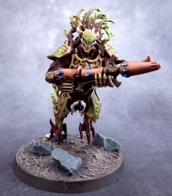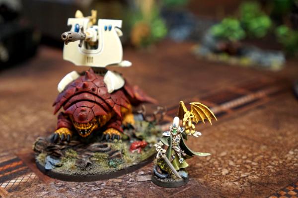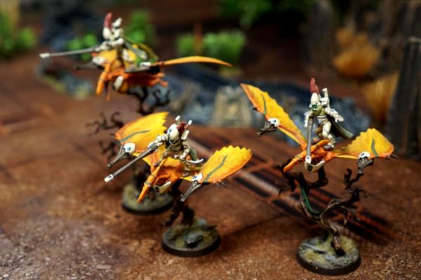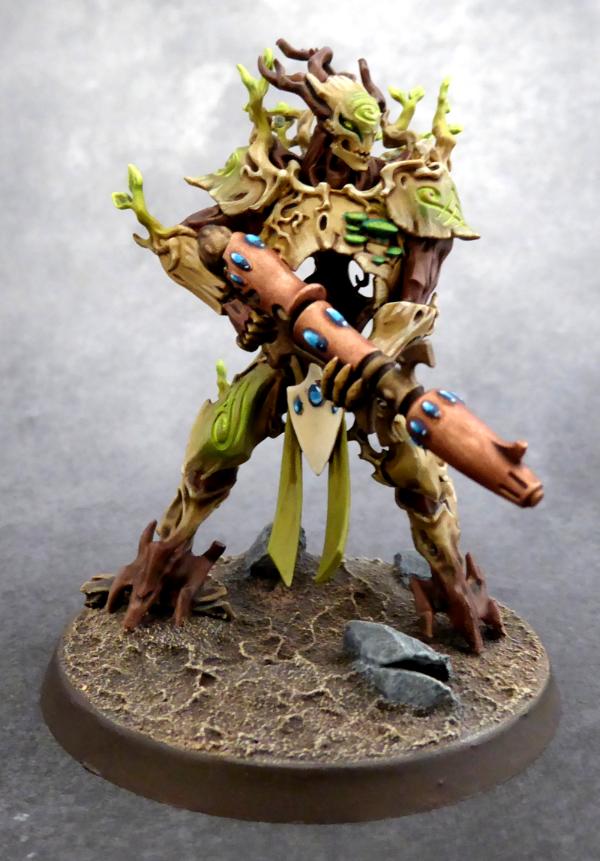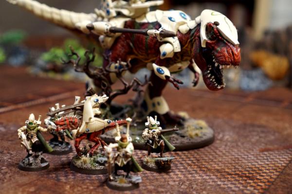 The army was a mixture of normal Eldar and light conversions using Lizardmen/Seraphon and Wood Elf/Treekin stuff.