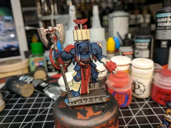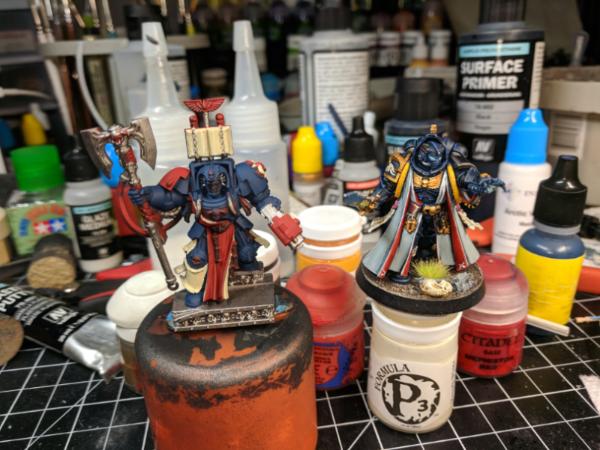 Edit for pics. Primaris Librarian is Solid Blue with Nuln Oil and I believe Army Painter Ultramarine Blue edge highlight. Space Hulk Librarian is currently just Solid Blue basecoat.
