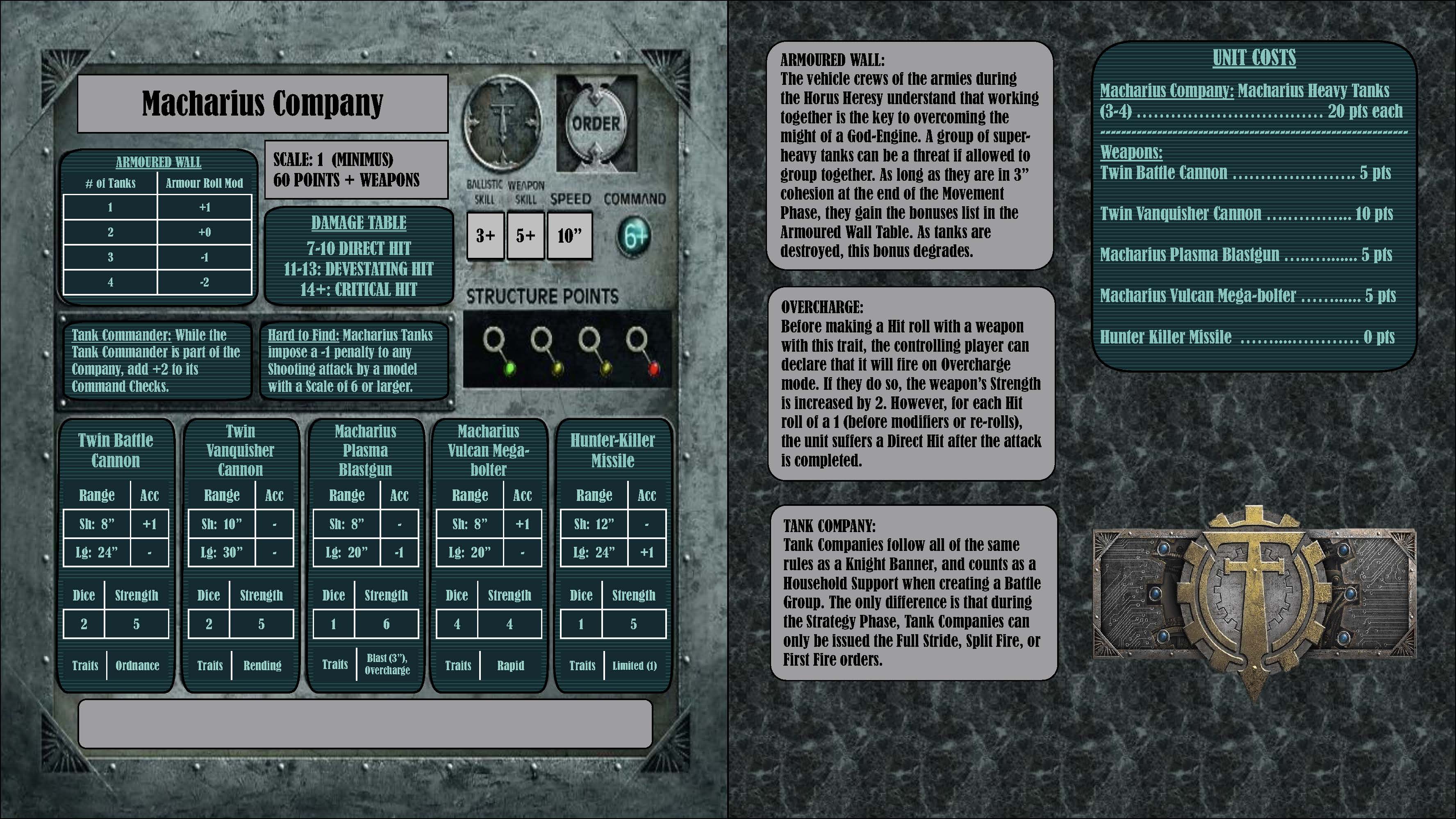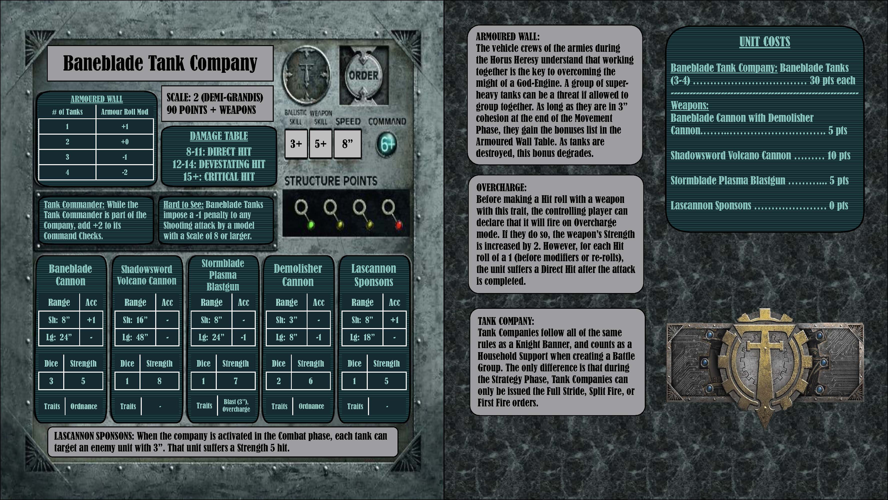 My mate and I have access to old Epic models along with newer Heresy Era tanks set in 8-10mm, and we both recently acquired several Baneblades, Fellblades, Macharius, and their variants. We decided to also come up with some fun rules for them to be used in Titanicus, alongside our God-Engines, which are attached below. I hope others enjoy these as well! If you have thoughts or constructive criticism, please comment below and I will make corrections. Enjoy, and praise the Omnissiah!