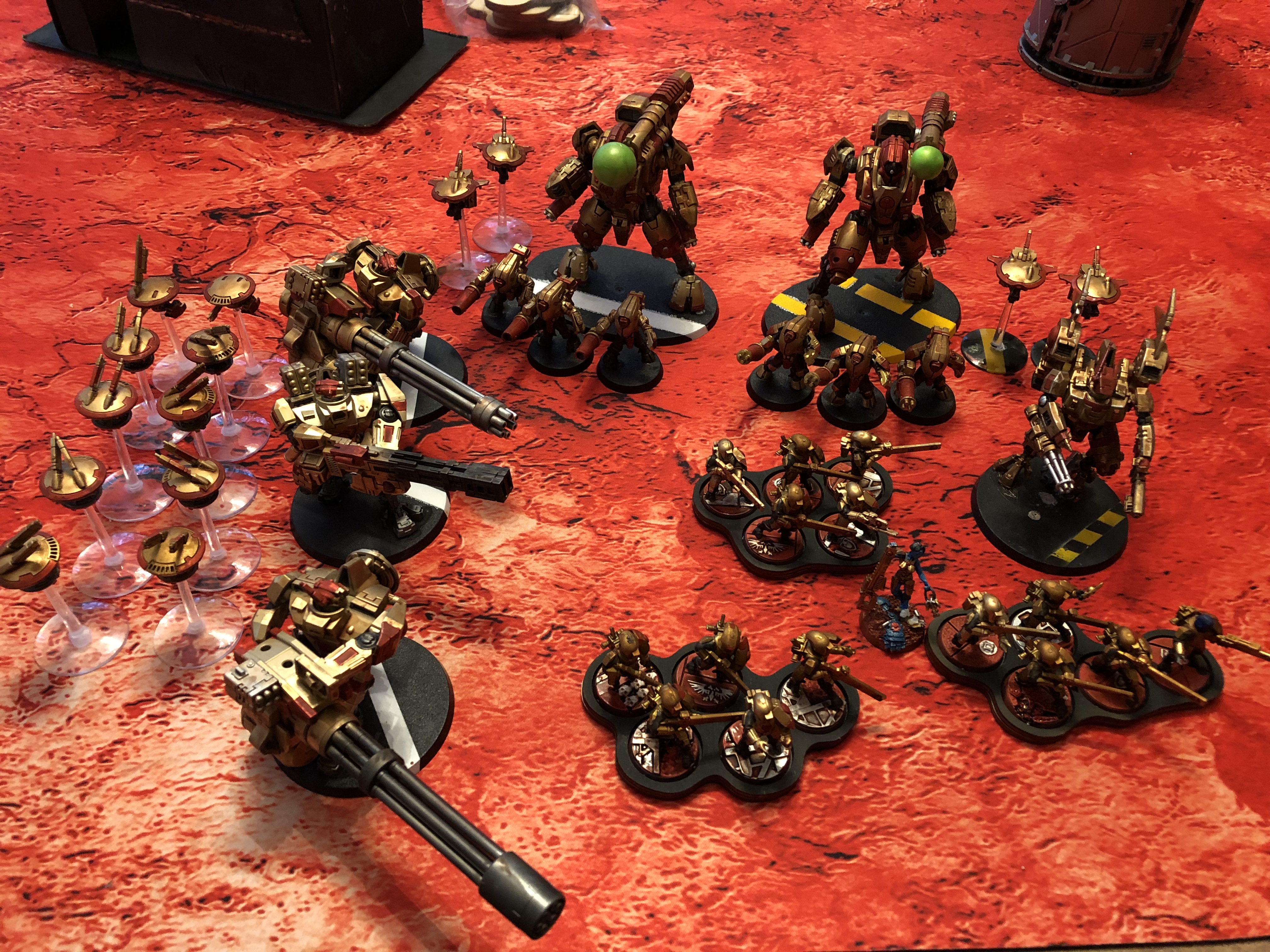 Yup starting a tau army here's what i got so far. The commander is going to be my commander an XV84 with Burst and CIB, running Ghost among us and Vectored thrusters so it can zip in, light some things up, and zip back to untargettable behind that riptide *soon to come*