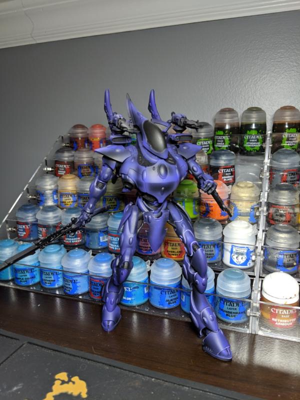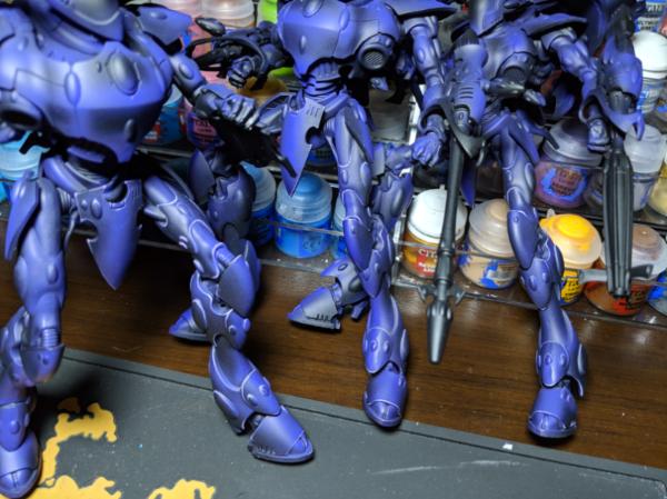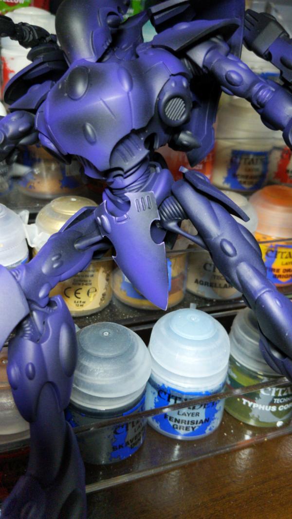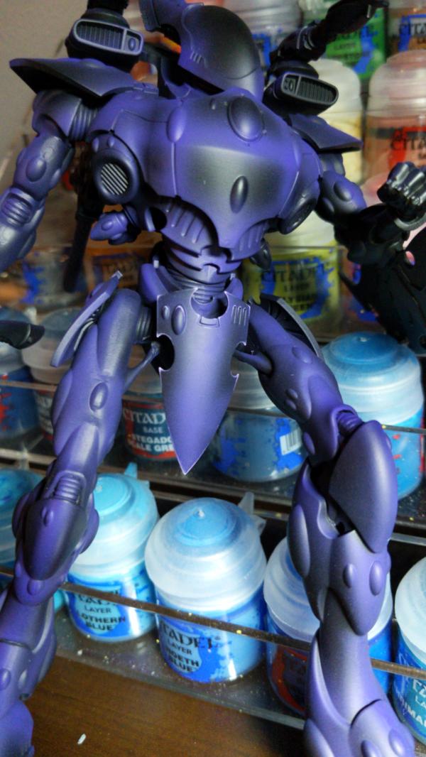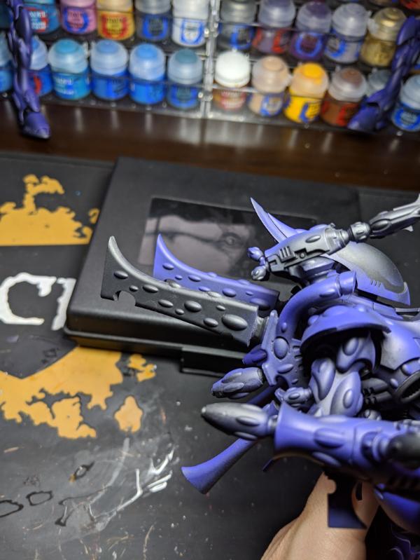 For the Wraithknights, I wanted something that would compliment the base with a certain aesthetic I was going for, so purple seemed the natural choice. Any gems are going to be a light but vibrant blue (think Caribbean sea).