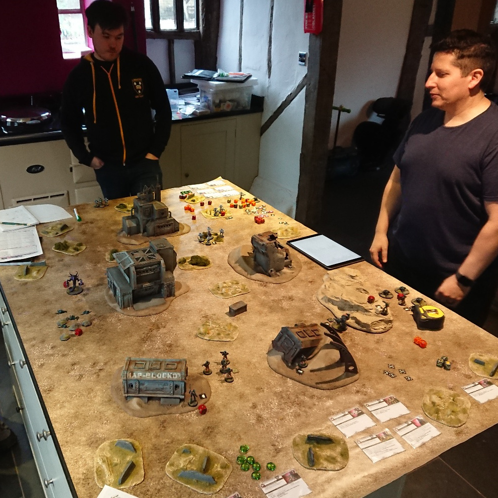 Thanks to Salute, we actually managed to get almost all of the Spiral Arm Studios gang together in the same timezone for a while! So we're taking advantage of this to get in some brainstorming and playtesting for ideas for Maelstrom's Edge V2. Exciting times!