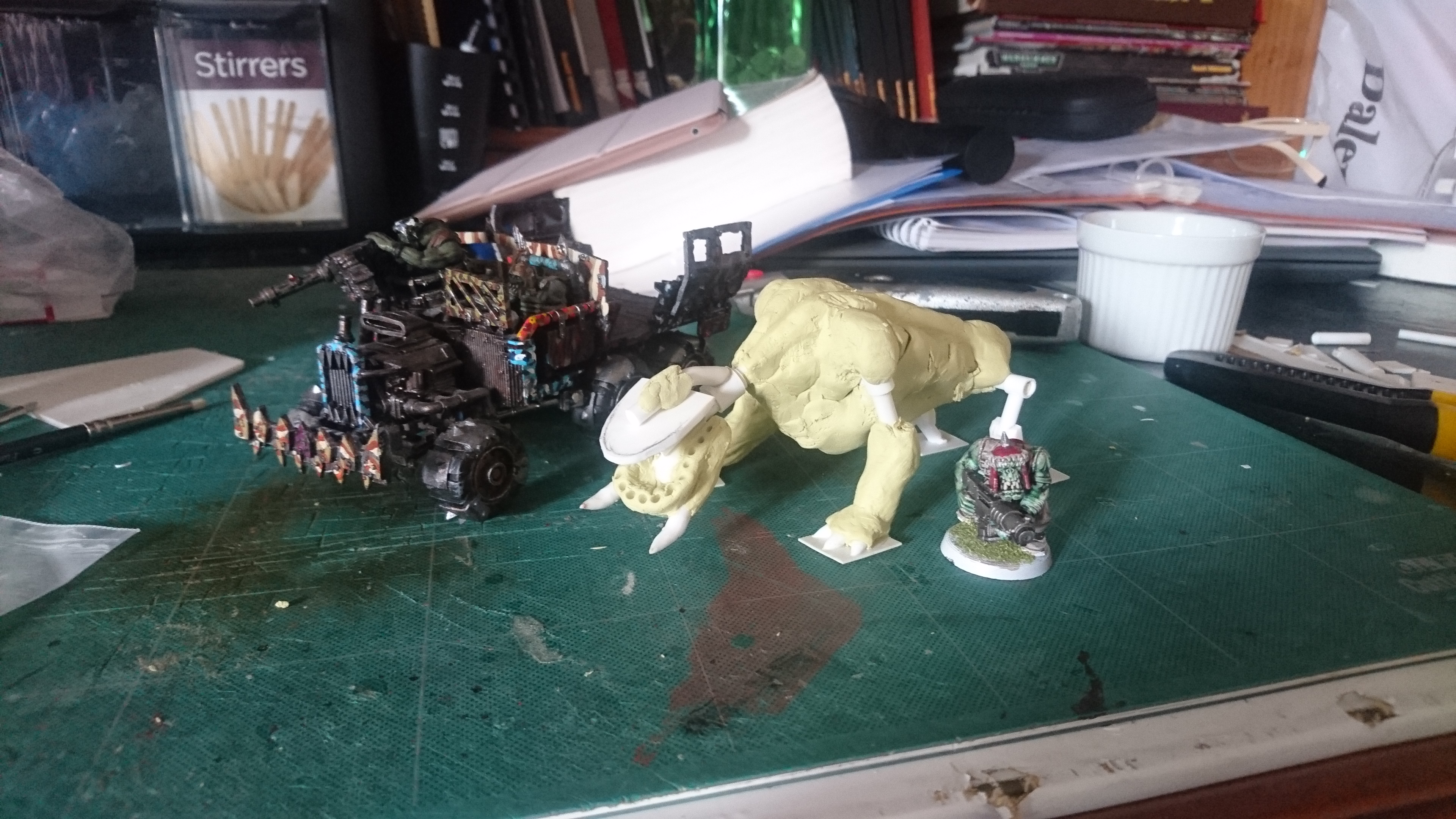 Should be able to start thinking howdah now that I know what sort of size he is, see if I can cover some of this up before I go pitting effort into sculpting bits which will be hidden!