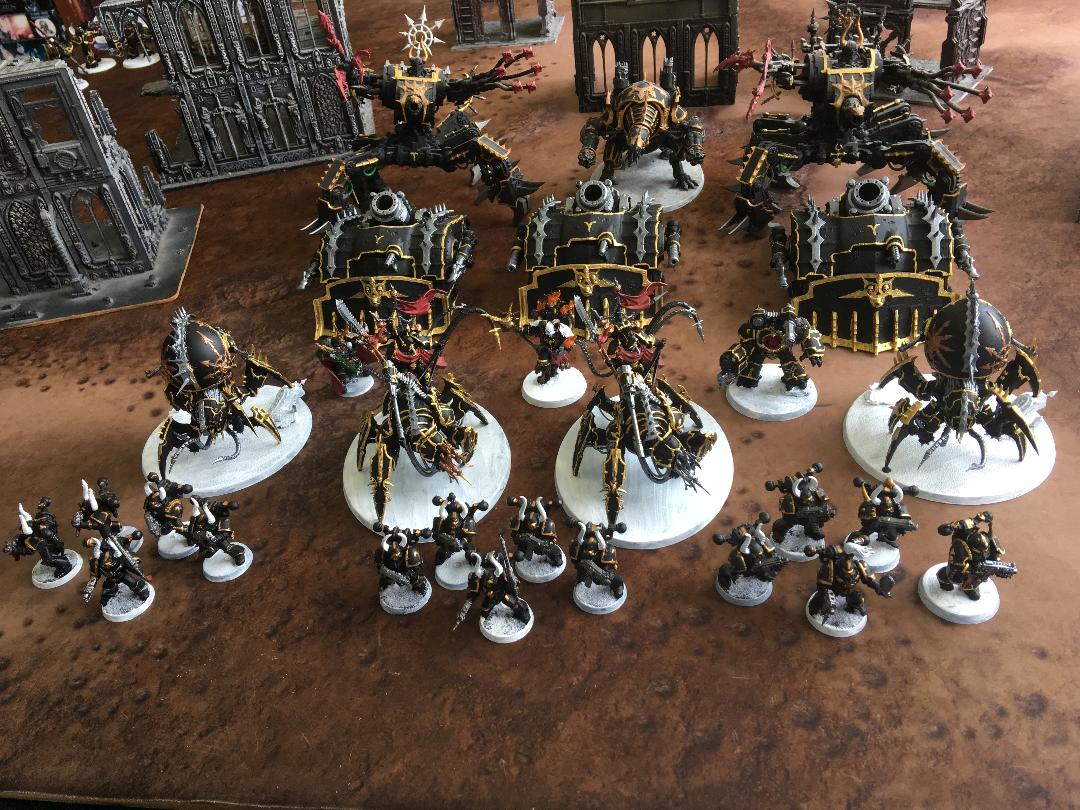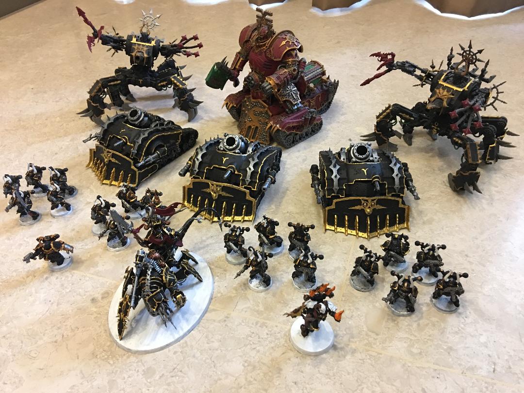 My Daemon Army List. Shadowspear added venomcrawlers and Lord discordants. But I have always loved my Khorne Lord of Skulls as a centre piece the most.