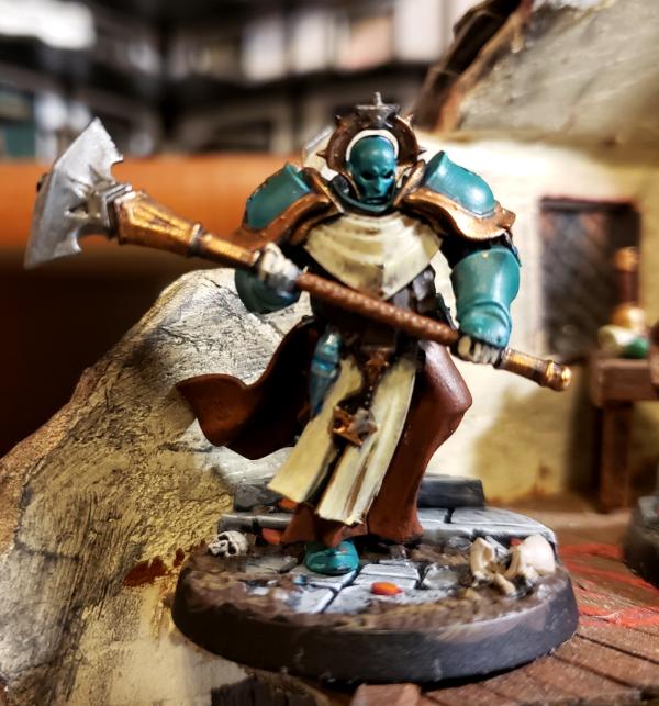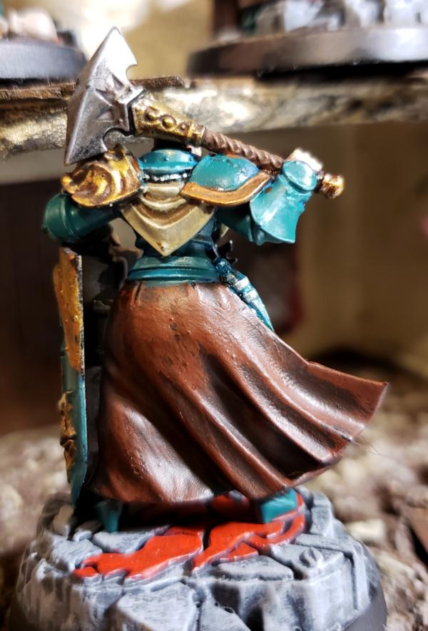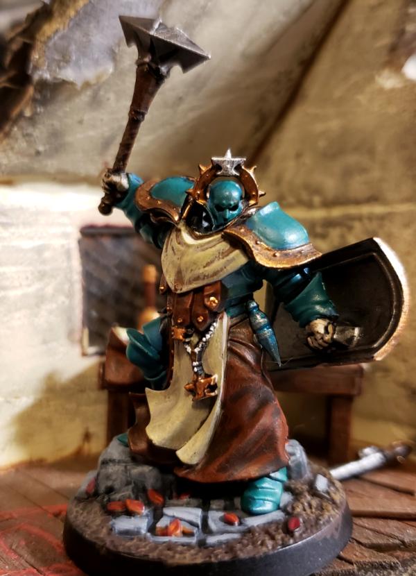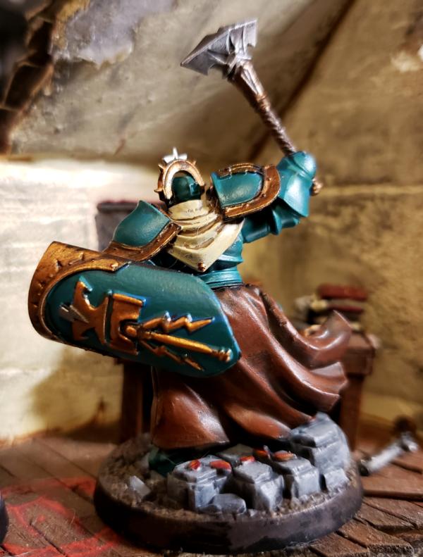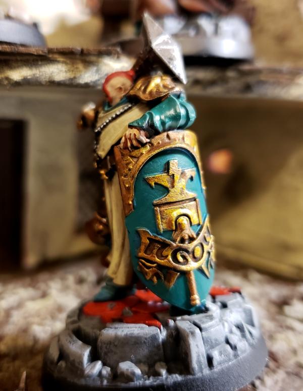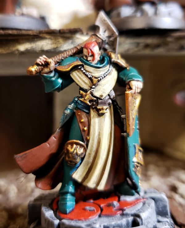 I picked these up as free promotional models about a year ago, and they have languished in my "to be painted pile" since then. I've never had any desire to do a "sigmarine" army, but I have to say these were really fun to paint up. I'm think I may go with a similar paint scheme once GW finally release sisters of battle. Let me know what you think of the scheme.