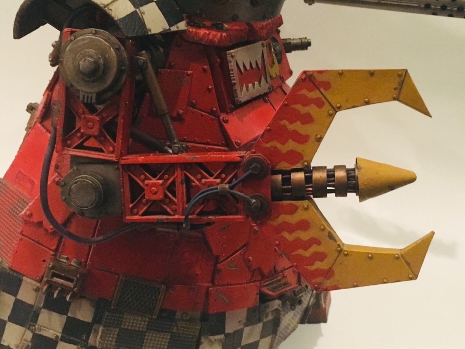 -LIFTA-DROPPA: this baby is SCRATCHBUILT, with power cabling and lots of rivets, a design inspired by that retro Ork style of lifta-droppa. Big, menacing, and covered in flames, because Orks!