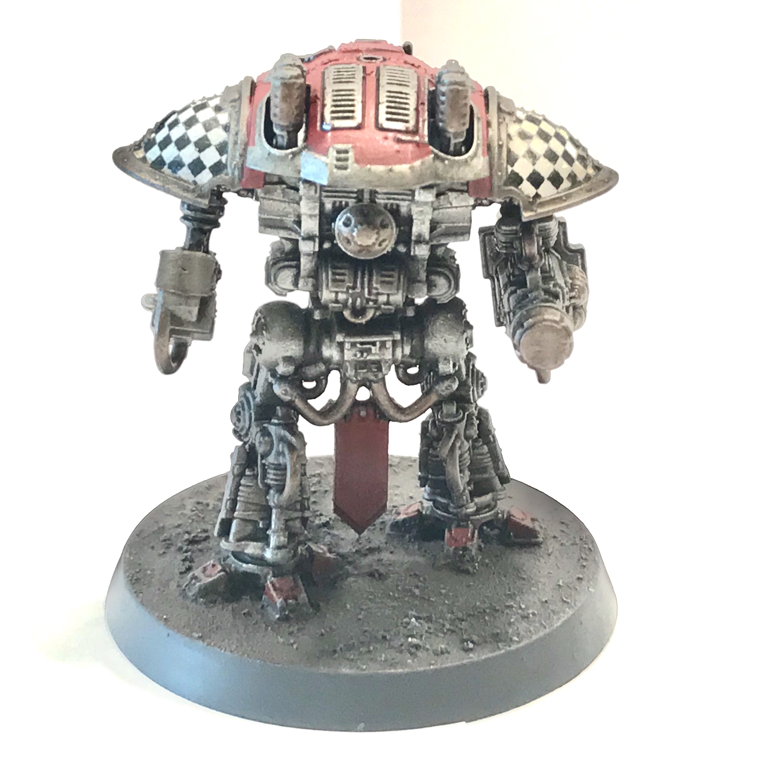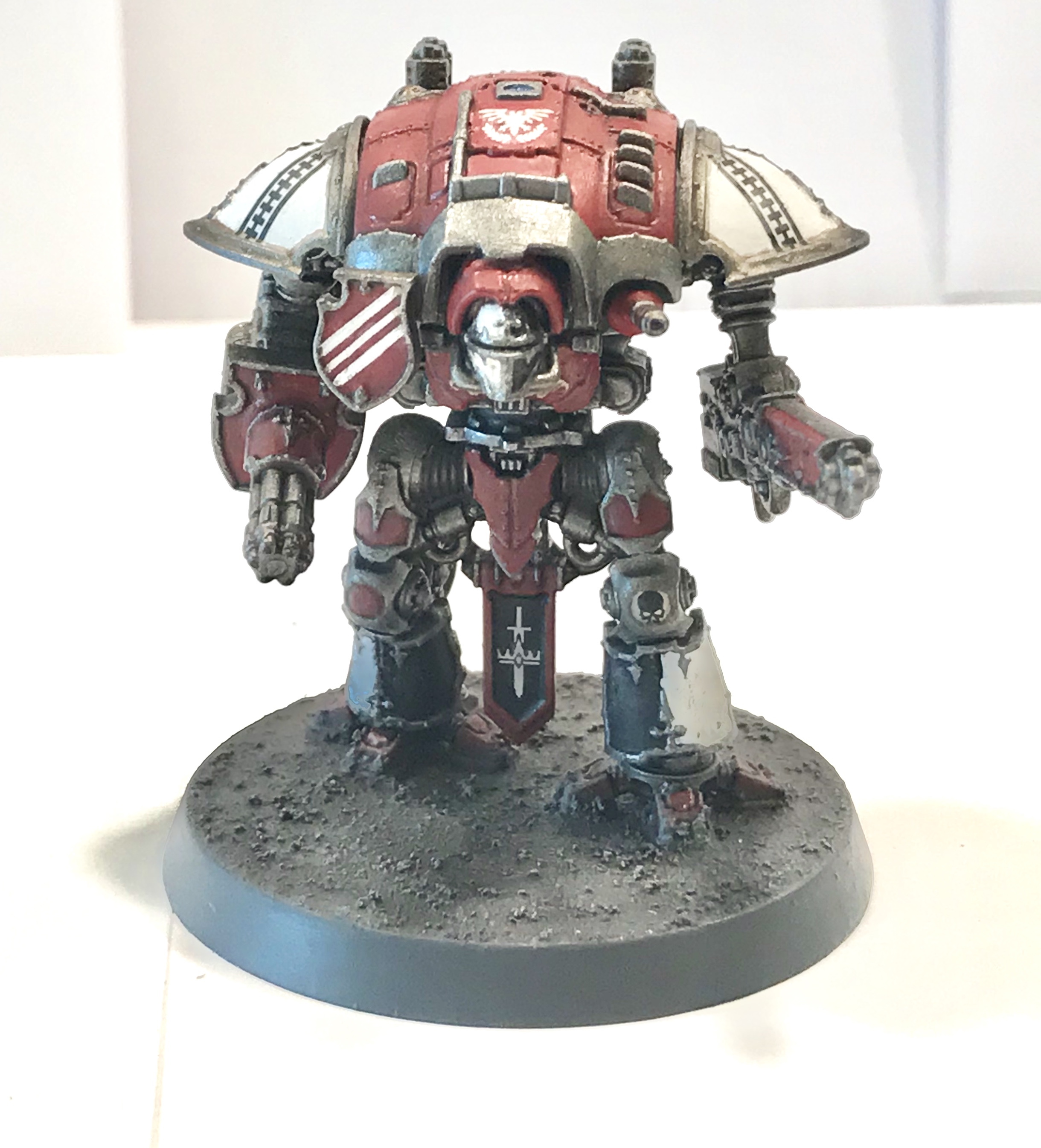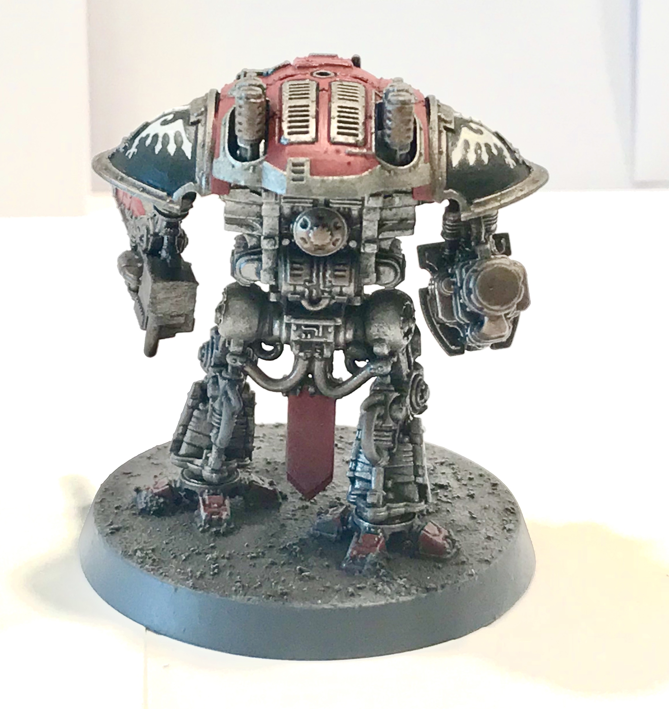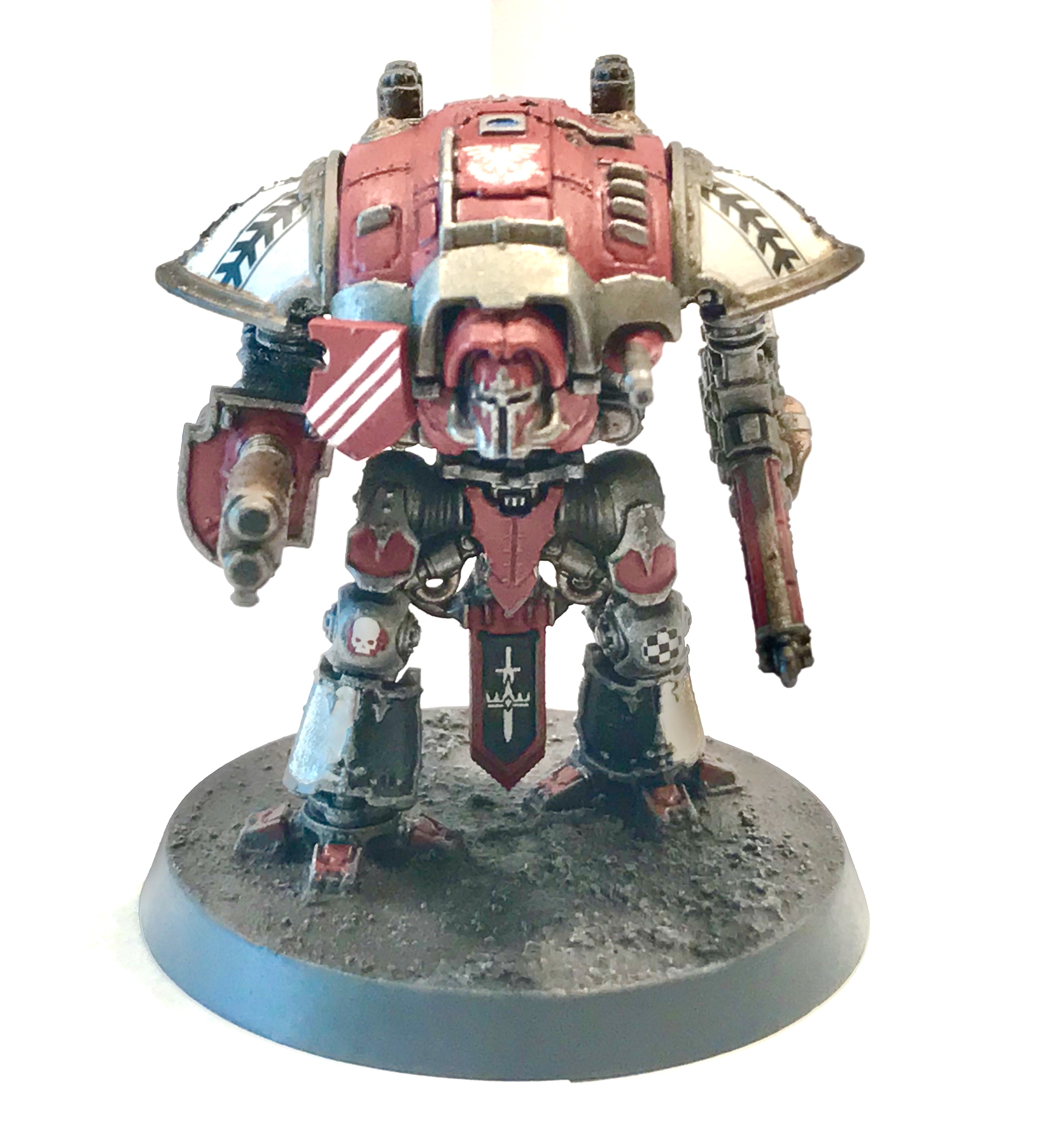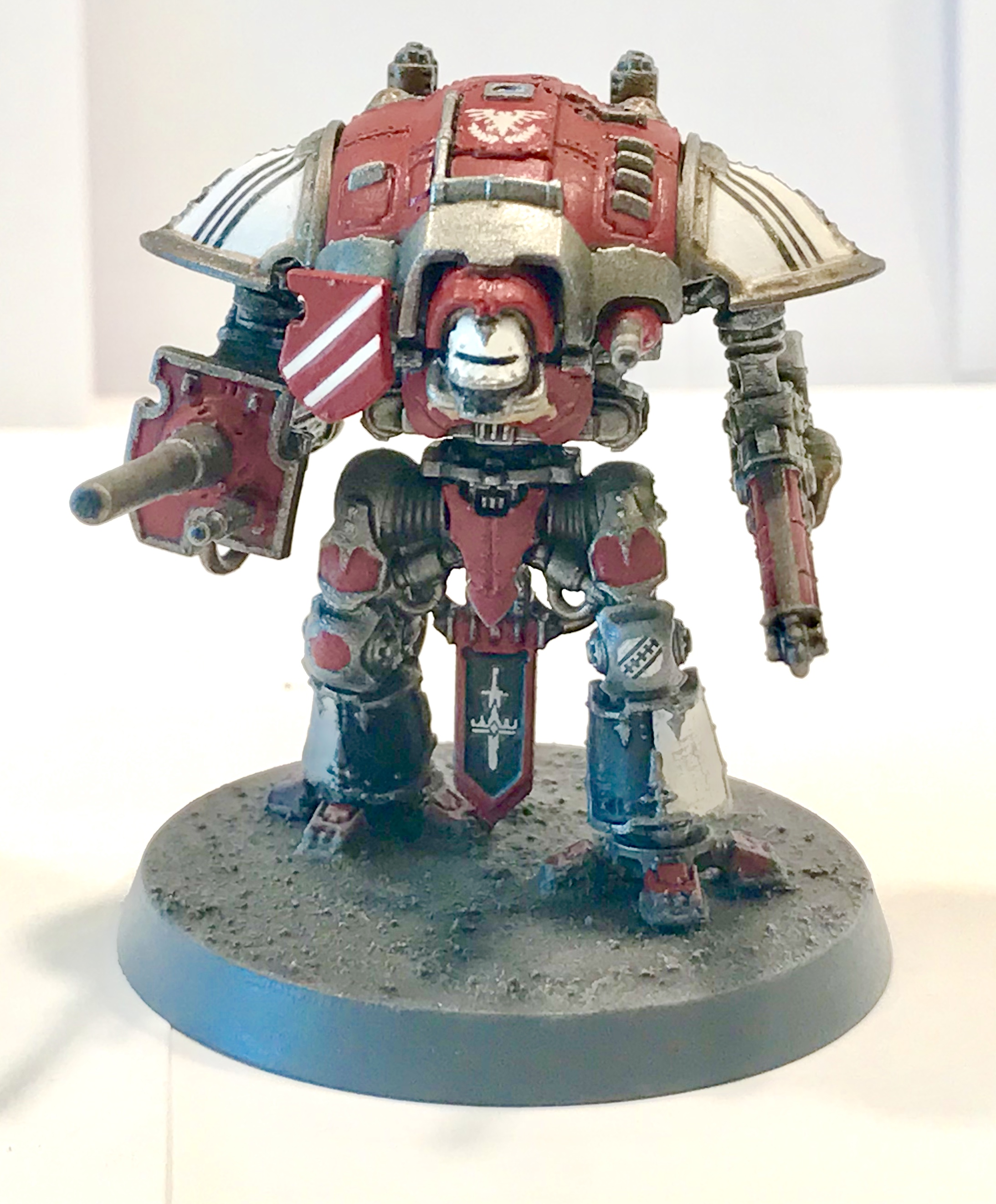 Just finished my first squad of knights, I painted them in a House Taranis scheme, I think it goes well with my Fire Wasp Warlord. Let me know what you think of my work below,thanks