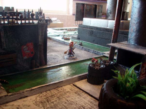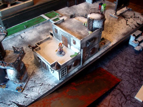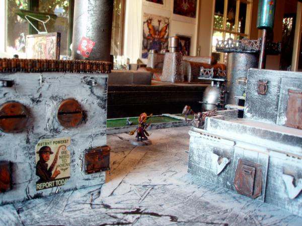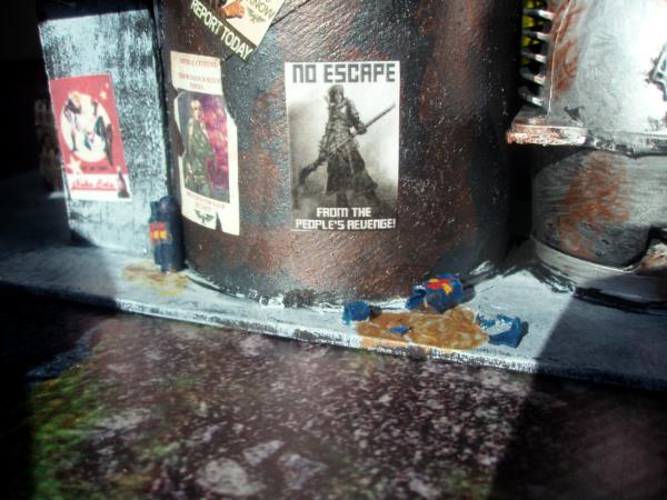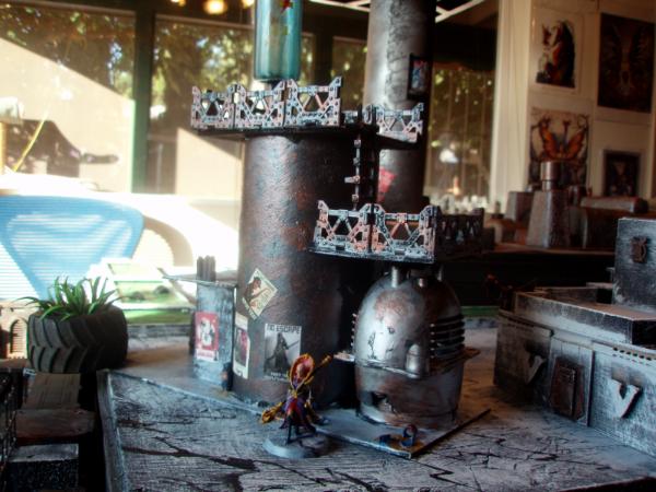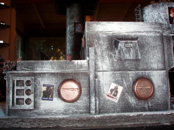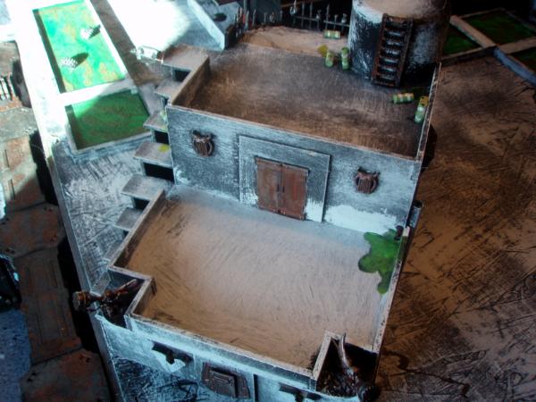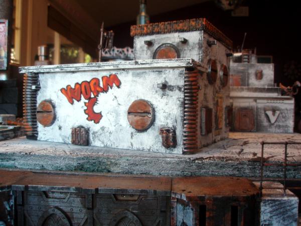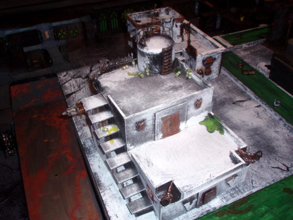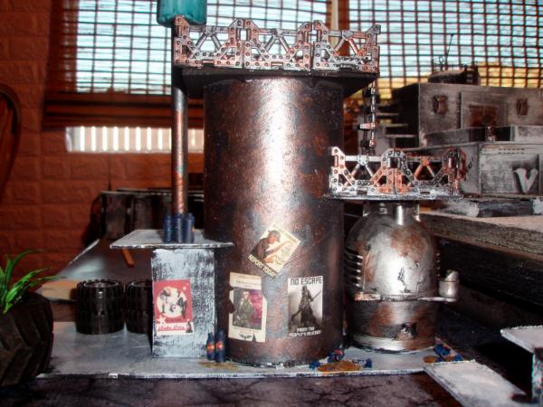 I am constantly updating my terrain tables. Currently my latest project is a Hive City style board. Here are pics involving three new buildings. I can't take credit for the posters, found on the internet and thanks to all the geniuses who made them, You rule! I've ordered a bunch of accesories (including lasercut signs etc, but not here yet)