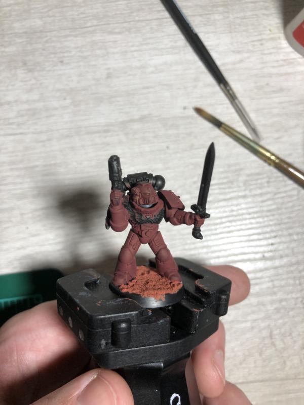 This one was my first attempt at the red. I forgot how hard it was to paint red over black, so it took more layers than I really wanted and I still have some touch-ups left to do.