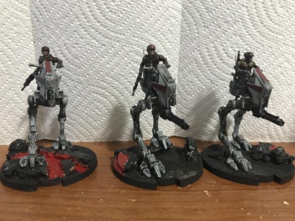 I've painted my first AT- RT and in good Star Wars tradition added red stripes to it to give the vehicle a more interesting look. I'm currently converting the second one and wouldn't mind reading people's thoughts on their preferences of what kind of appearance these should ideally take. There's even a poll for anyone interested.