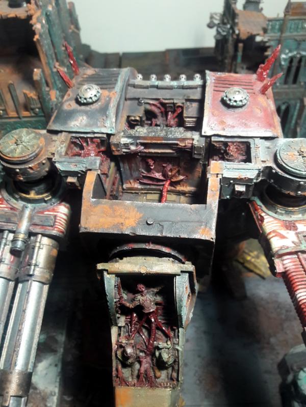 Behold, my dark and twisted lords of Dakka, the Warhound Titan known as The Scar of Dishonor, of the traitor Legio Mortis *phlegmy cough* ...