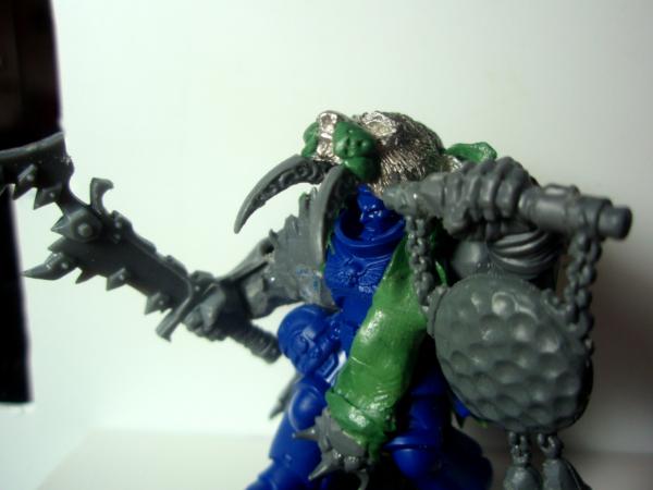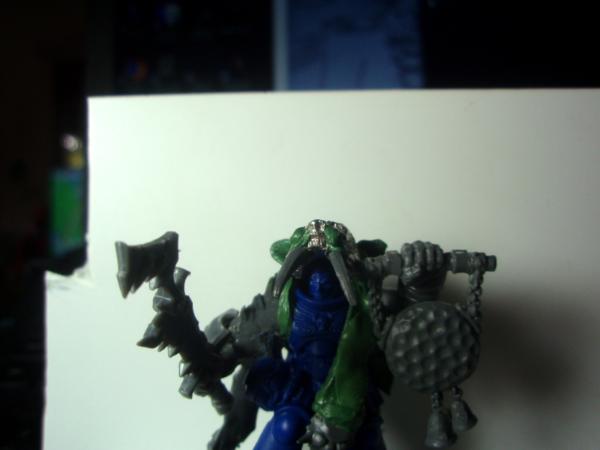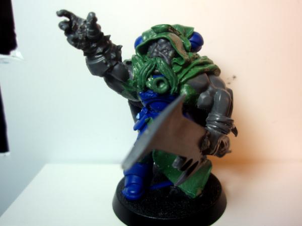 And my Chaplain conversion. Based on snap fit primaris. Ogre Kingdom bits. The sabertooth head is from a very very old lead werbear. Needed a TON of cutting and drilling and now I remember why I don't miss lead. GS to turn a bear into a tiger. The tusks are old daggers from DE maybe? I imagine the ivory tusks would be carved so used these. Scale is iffy, but I like it. Anyway, Mongolian shamans carried a hide drum, so I gave my guy a gong. Back pack is magnetized so he can be a jumper or not.