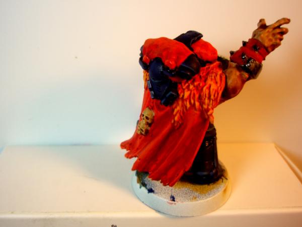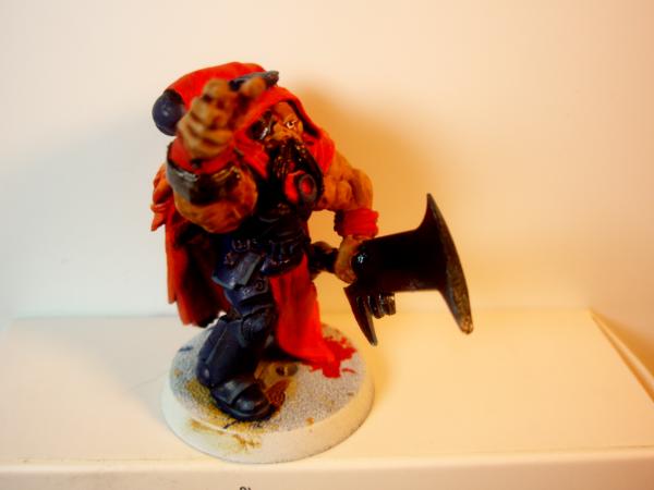 Painted the Librarian. Went with the blue libby armor, but did his Phobos cloak in the red/orange of my chapter so he fits in. For some reason my old crappy camera really washes out reds/oranges, so the shading isn't coming through in the pics. He also seems glossy, which he isn't in real life. Maybe my lights were too close. Well, I'm tabletop at best so whatever. Really happy with this guy. Lot of character.