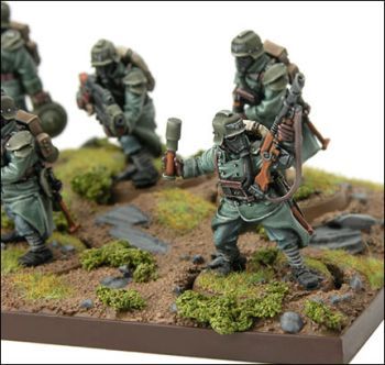 Yep, the entire palette screams Vallejo WW2 Germans. The helmets are Feldgrau looking, the trousers look like early German green (not sure the name of the colour). The jacket is also a German camo colour.