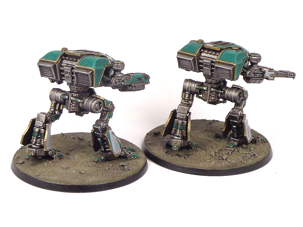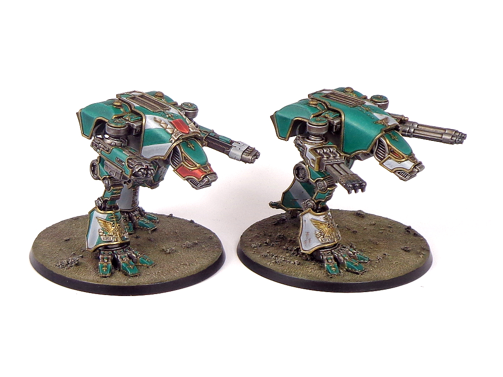 Gone with Kabalite Green and a light grey for the most of the heraldry. Unsure whether I'll decal and weather these now, or proceed onto the warlord and reaver.