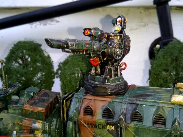 Something I really like about this is it fits with the concept as it would provide a very versatile gun which could protect the convoy from air-raids or even from light armor, while serving as a great infantry killer. While many Warhammer Vehicles use guns fixed in the forward position, often with nothing to aim them, I wanted to keep the vehicle something that could use most of its weapons regardless of which direction a threat comes from.