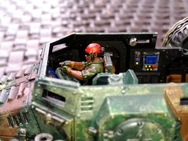 As a personal touch, and going with the theme I wanted to build for an all-female Catachan unit I swapped out the driver’s upper body for more Anvil bits, and put in a Raging Heroes gunner.
