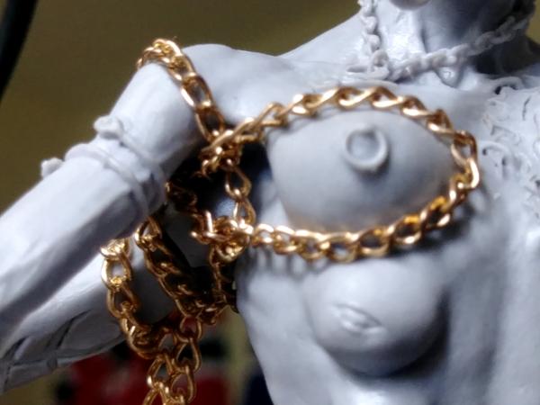 The chain around Her torso is more complicated and only glued in one spot on Her back. I'll probably be banned if I attempt to post a graphic showing you how I did that one.