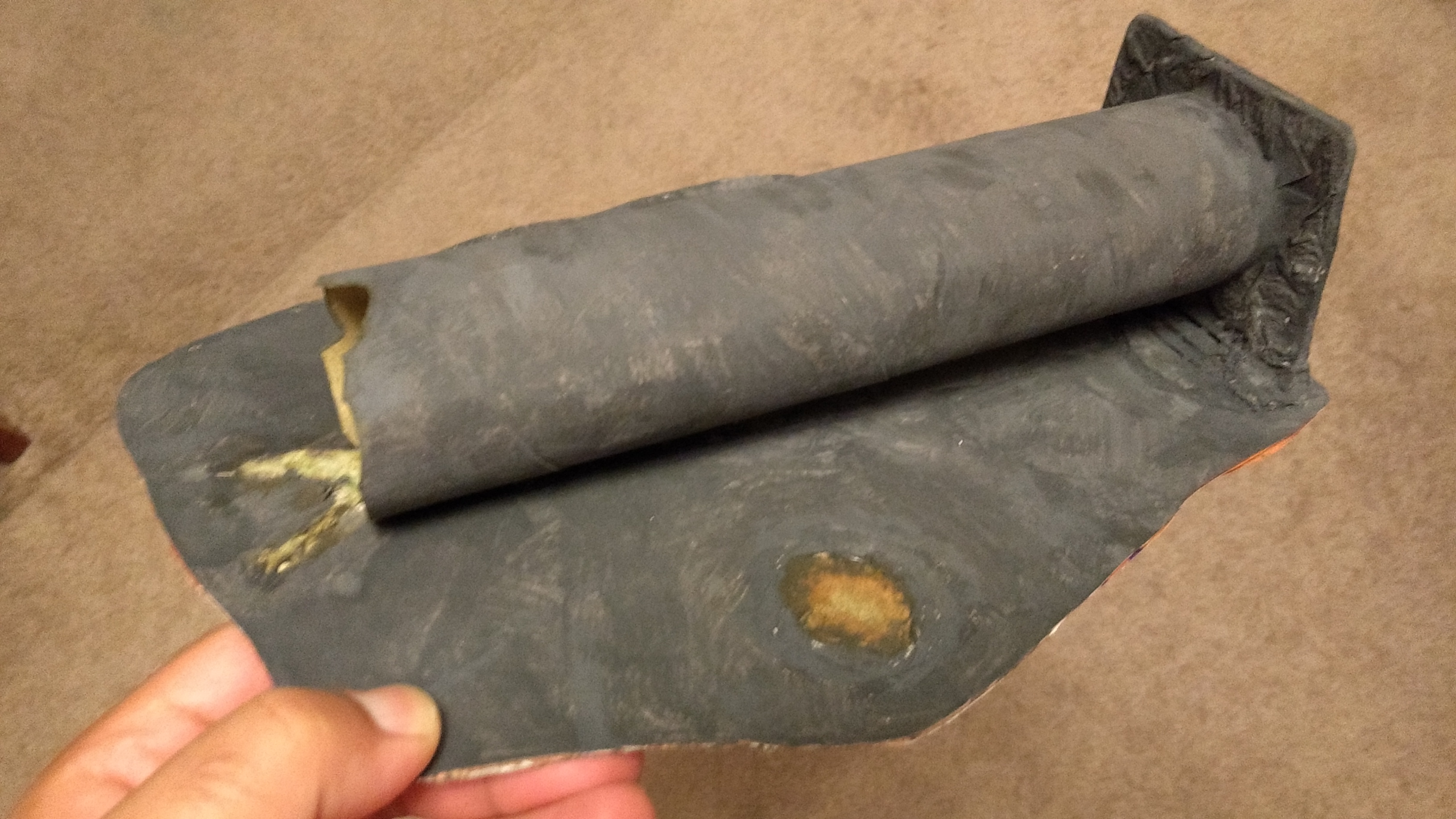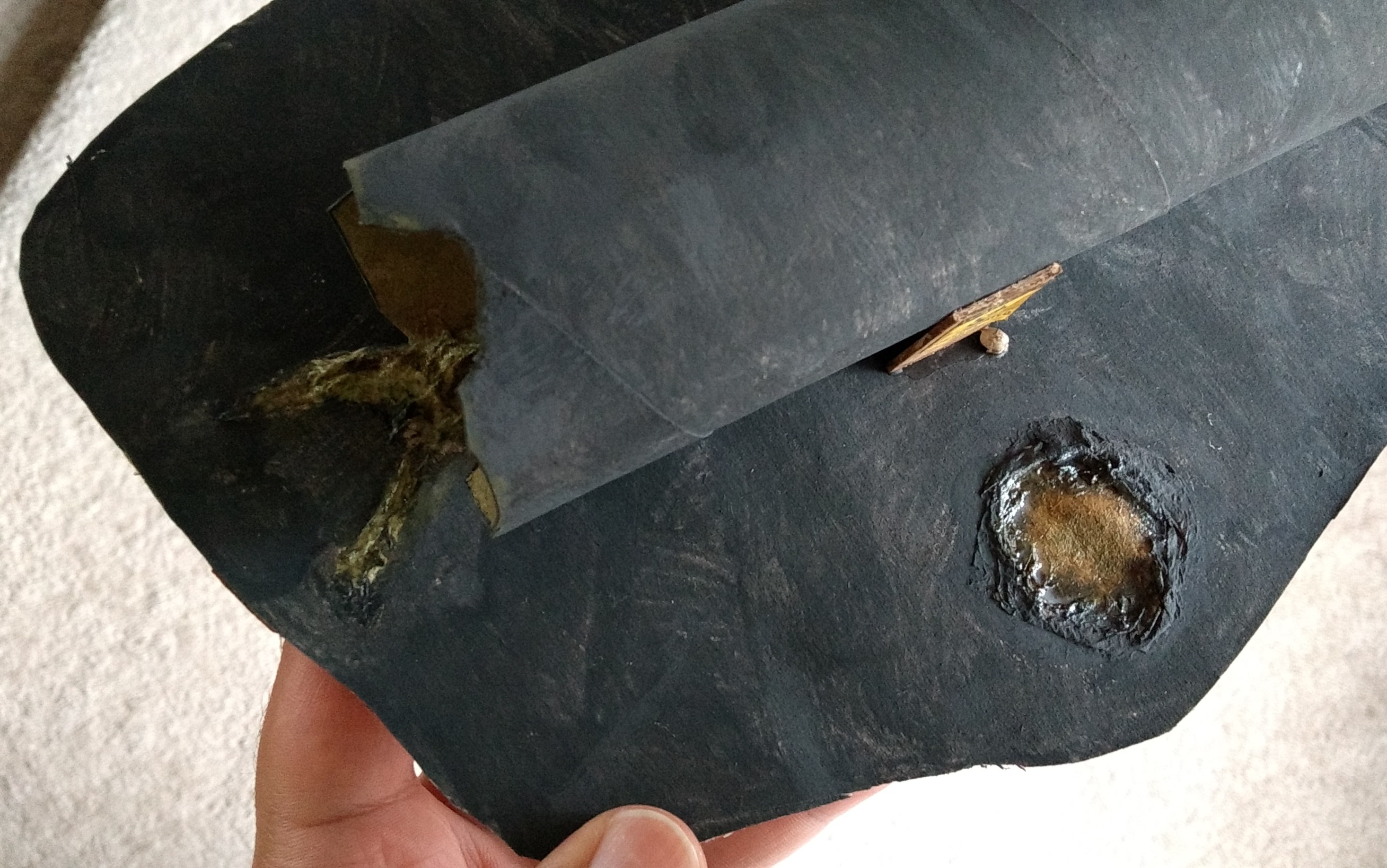 Pipe: flat cardboard layers for base, kitchen roll tube for pipe, cardboard box flaps for wall, toilet tissue & PVA to cover open ends and create sewage effects, poster paint