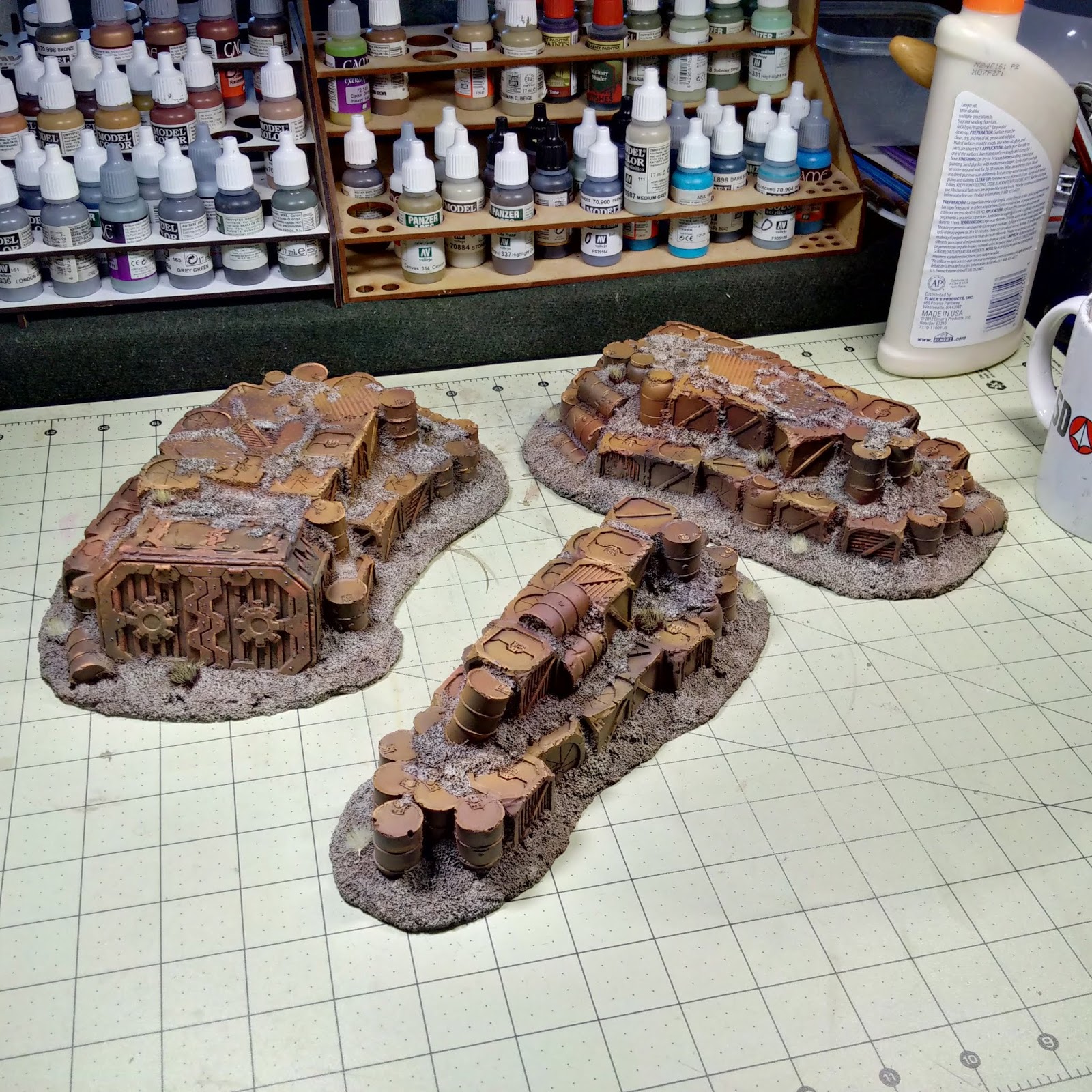 I have not posted here in a bit but given we are in another lockdown for at least a few more weeks i have gotten to work putting together some terrain for my manufactorum themed map pictured previously.