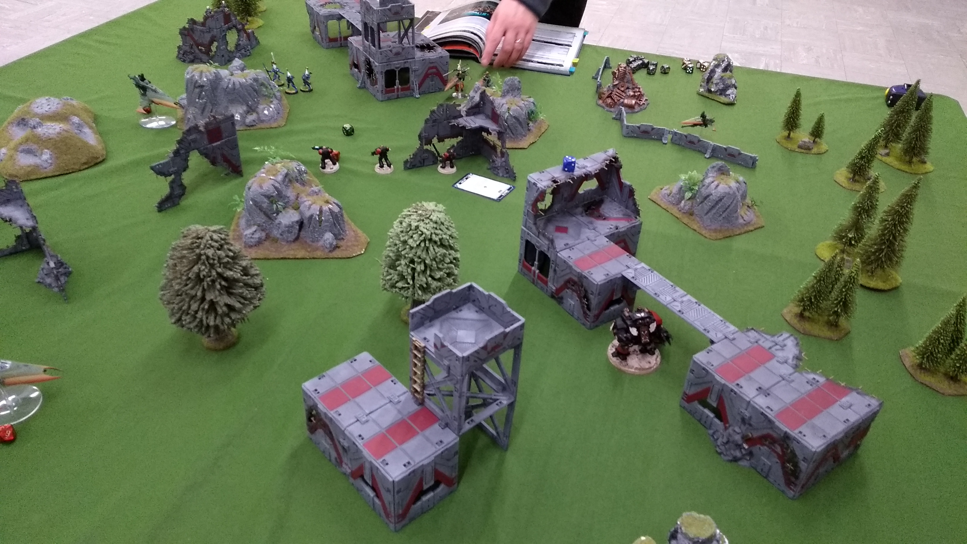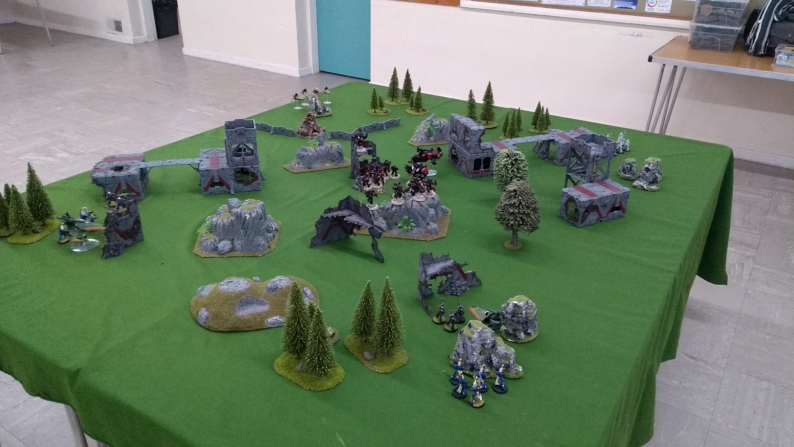 Really great battle today! Lovely terrain, great company and a unique deployment (which saw my Angels Revenant chapter end up in the middle of the battlefield with some sneaky Xenos skirting the edges of all four corners).