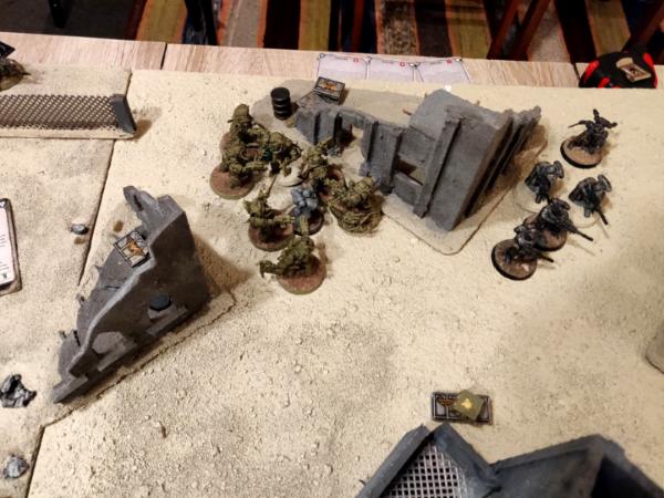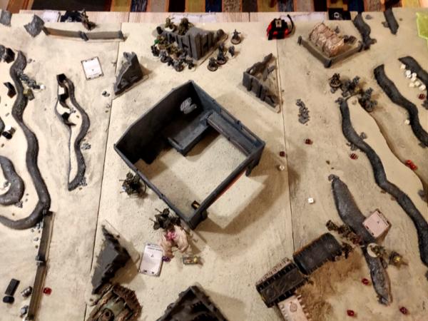 In the shooting phase; 5 aggressors take 98 shots, 73 hits, 27 wounds into plague marine squad who are totally destroyed. Eliminators try to wither the daemon prince once again, only the Korvadari bolt's mortal wound (mortis round) gets through.