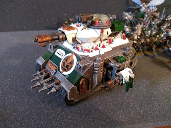 SoB land raider, but I'm looking more on the kit bash side like the predator I've done before that was mostly a kit bash and not much converting. Tracks to wheels, extra turret ring from the rhino turret bit for the razerback/pred. Was thinking of using and extra Immolator turret for the twin