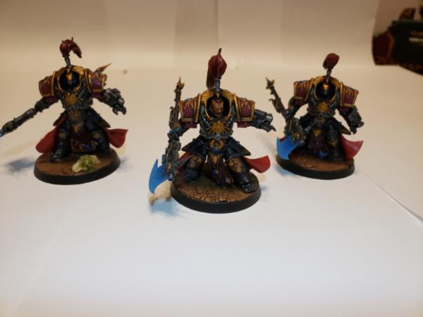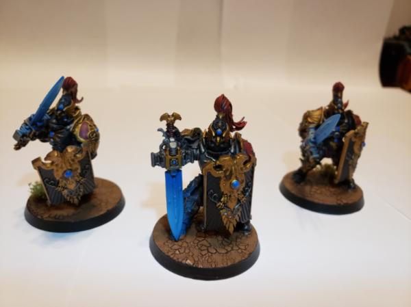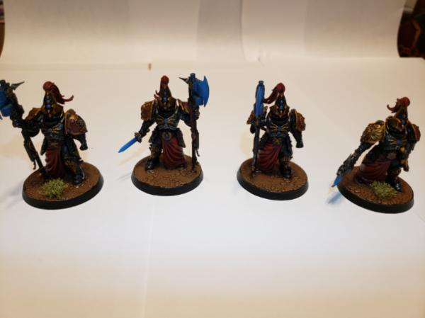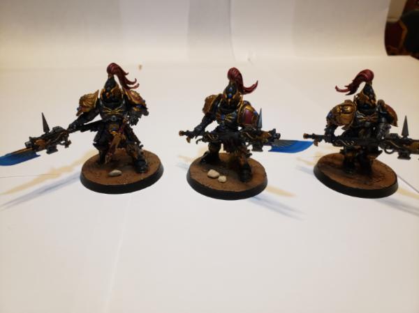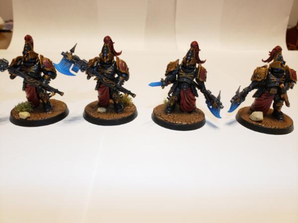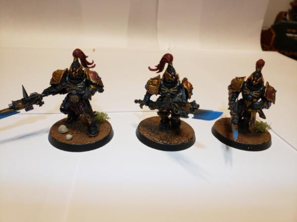 Got some Custodes models I had commissioned to be painted by Seventh Forge Studios recently as Shadowkeepers. All the painting was done by them, I glued the rocks and bushes to the bases.